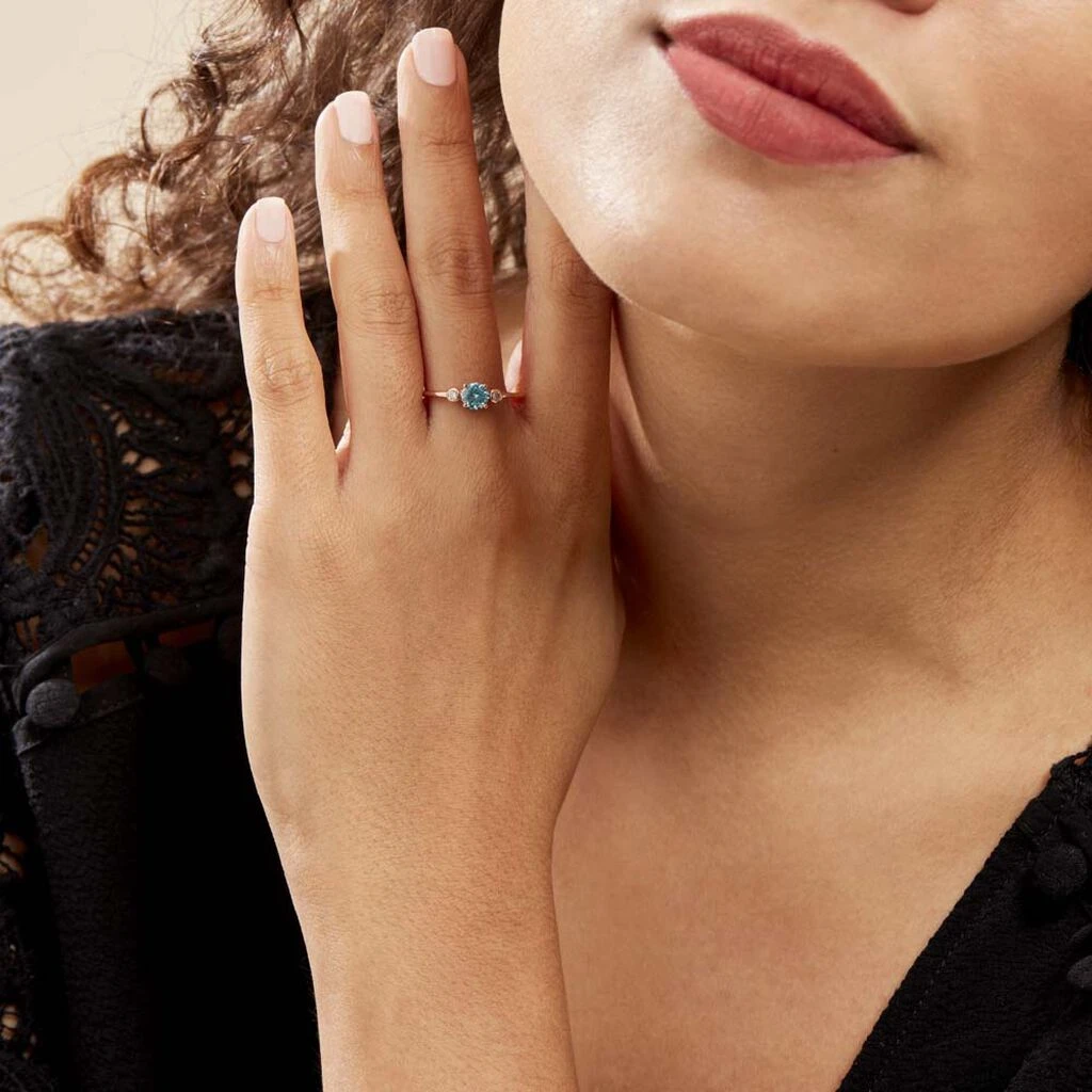 Bague Solitaire Argent Rose 925/1000 Oxyde De Zirconium Bleu 4 Griffes Accompagne Serti Clos Oxydes De Zirconium