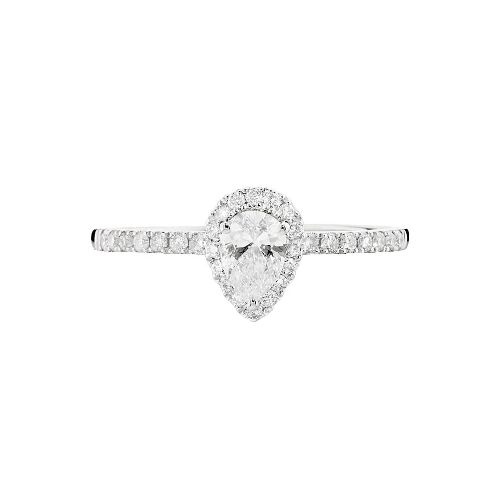 Solitaire Or Blanc 750/1000 Diamant Central Forme Poire 0.32cts Accompagne Diamants