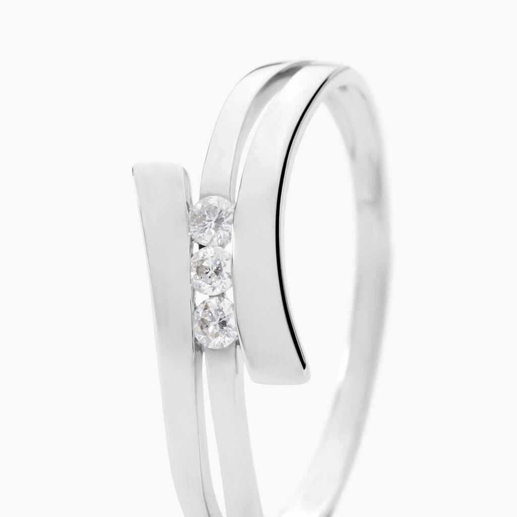 Bague Or Blanc 375/1000 Trilogie Diamants 0.1cts