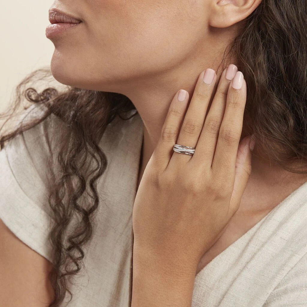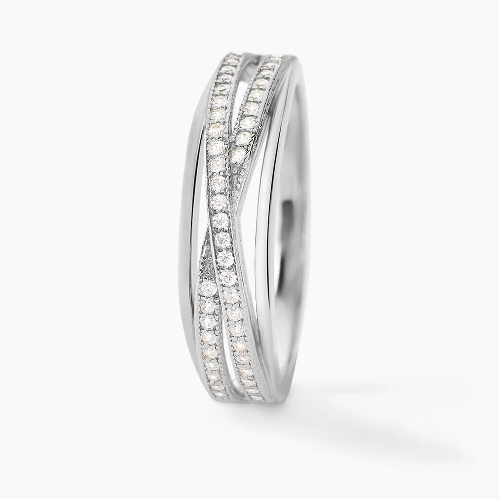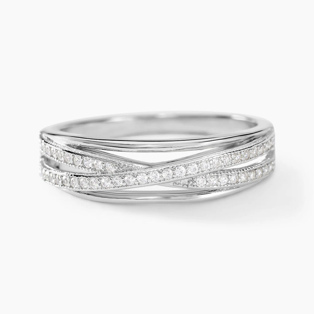 Bague Argent Blanc 925/1000 Oxydes De Zirconium Croise