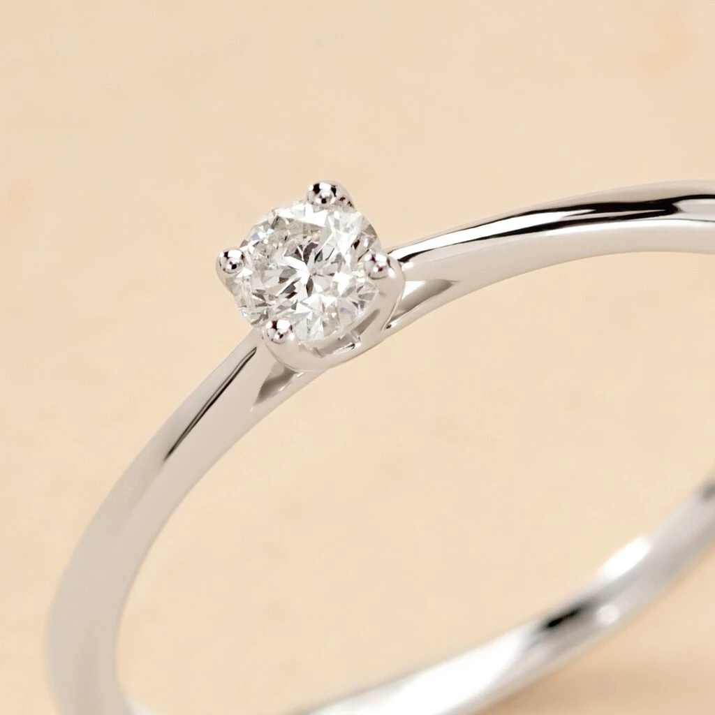 Bague Solitaire Or Blanc 375/1000 Diamant 0.10cts Serti 4 Griffes