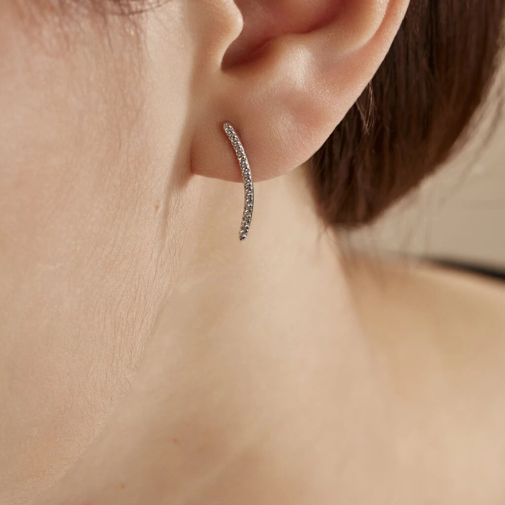 Bijoux D’oreilles Or Blanc 375/1000 Forme Barrettes Pavage Oxydes De Zirconium Blancs