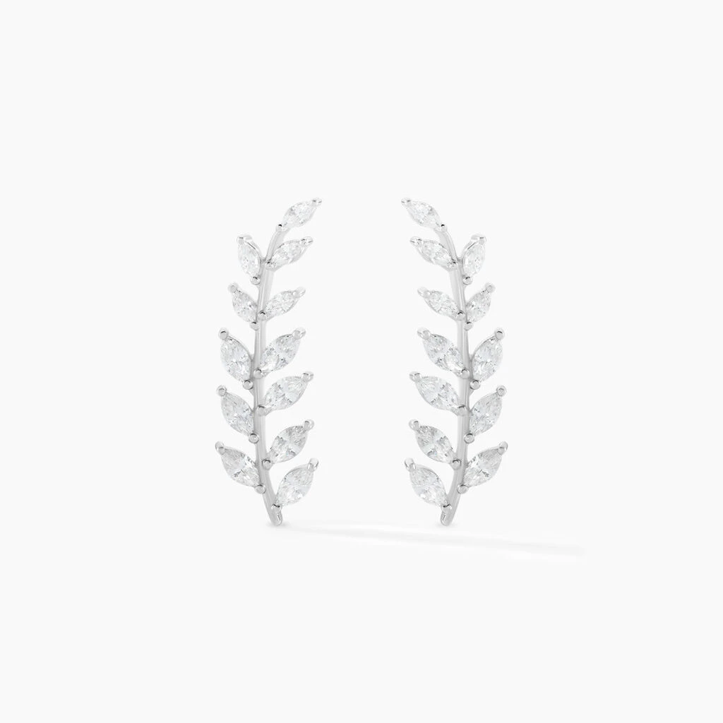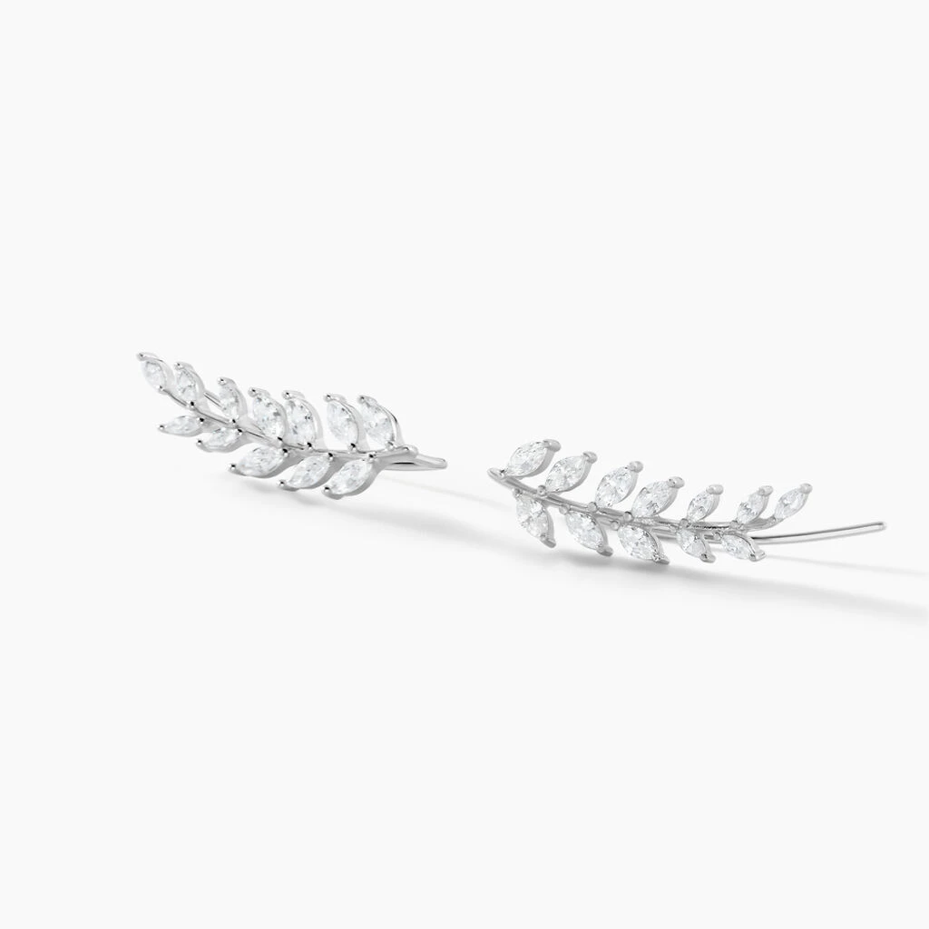 Bijoux D’oreilles Argent Blanc 925/1000 Motifs Feuilles Oxydes De Zirconium