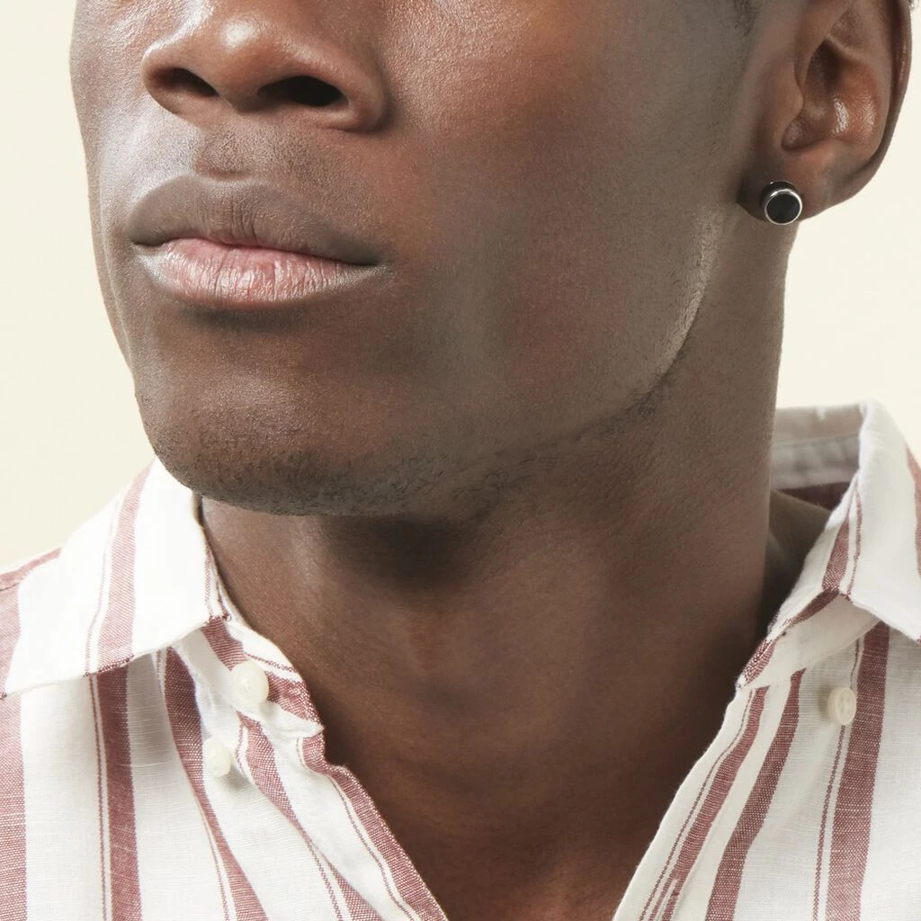 Boucle D’oreille Unitaire Argent Blanc 925/1000 Clou Rond Email Noir