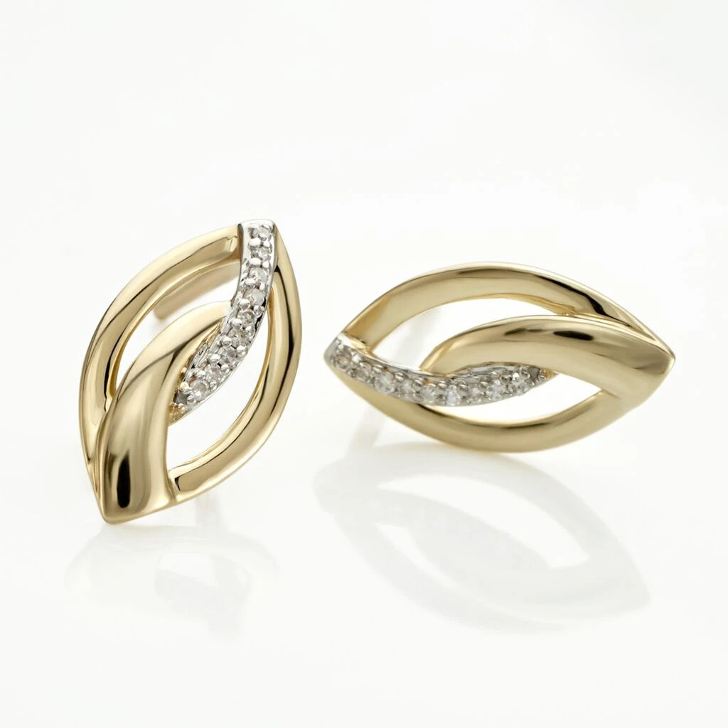 Boucles D’oreilles Puces Or Jaune 375/1000 Forme Gouttes Entrelacées Pavage Diamants Blancs