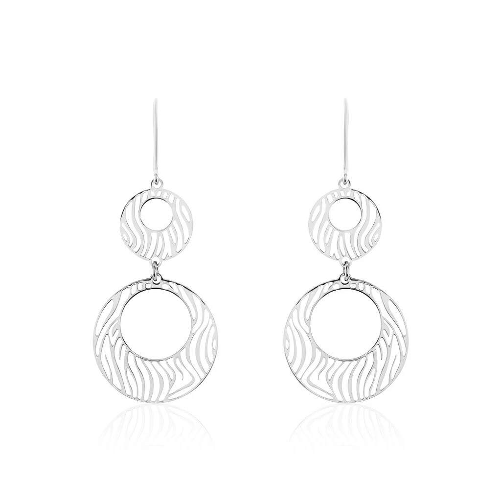 Boucles D’oreilles Pendantes Argent Blanc 925/1000 Cercles Motifs Zebres
