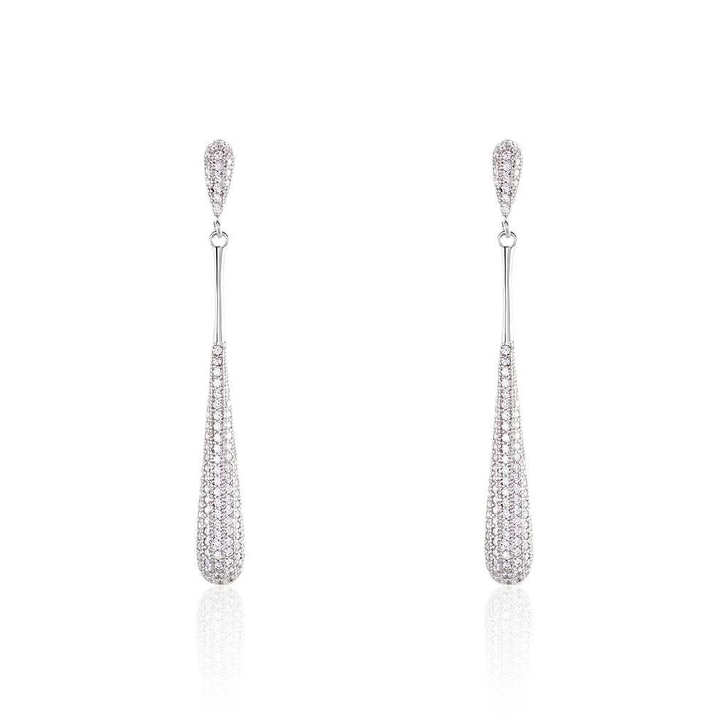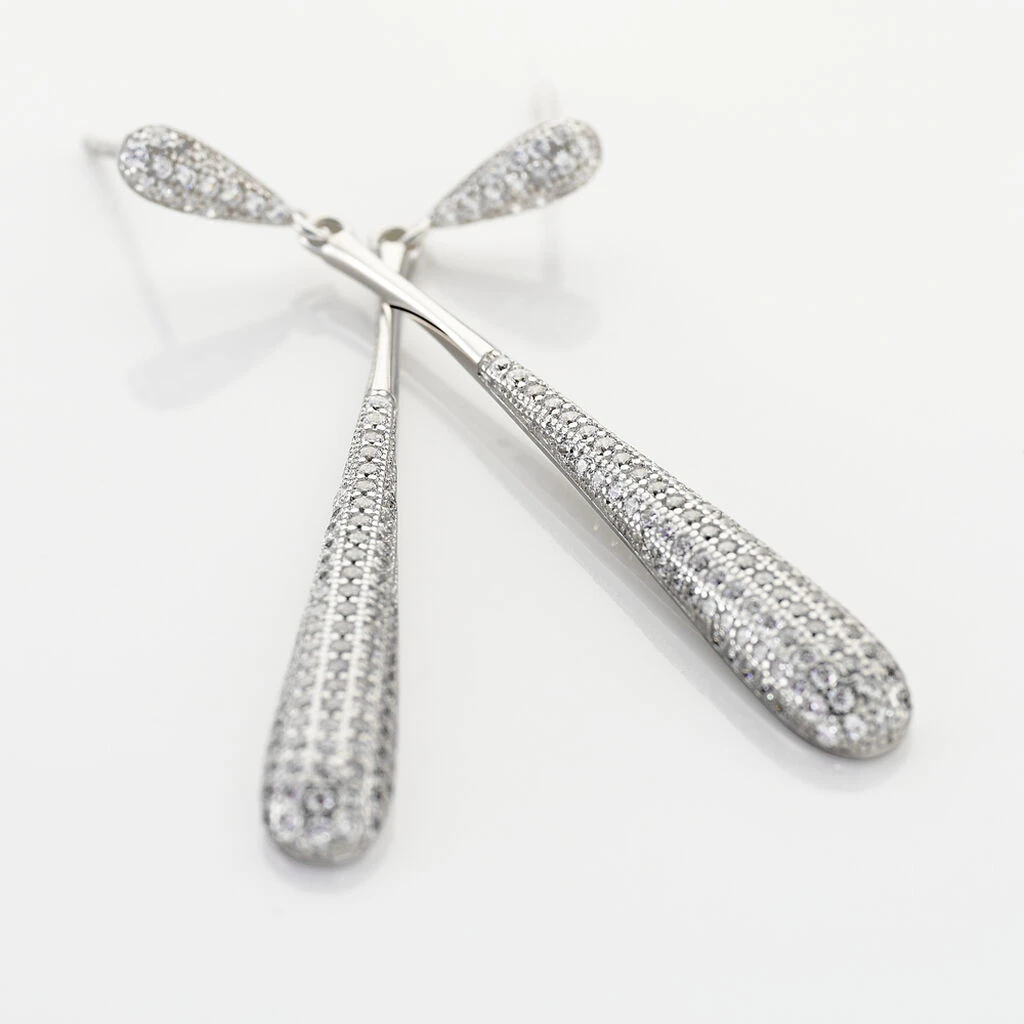 Boucles D’oreilles Pendantes Argent Blanc 925/1000 Formes Gouttes Fine Oxydes De Zirconium
