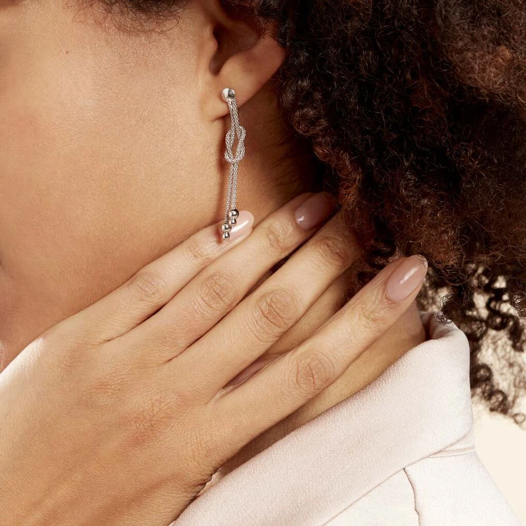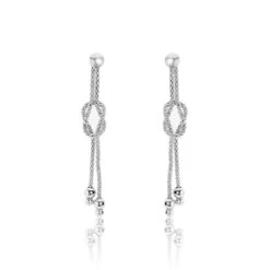 Boucles D’oreilles Pendantes Argent Blanc 925/1000 Noeuds Marin Maille Pop Corn