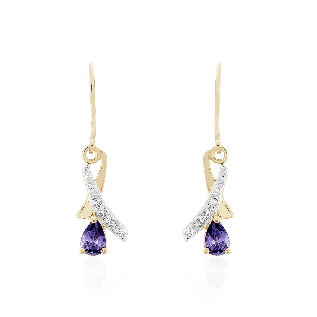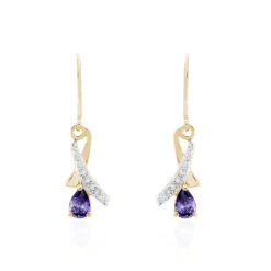 Boucles D’oreilles Plaqué Or Et Oxydes De Zirconium Violets Et Blancs