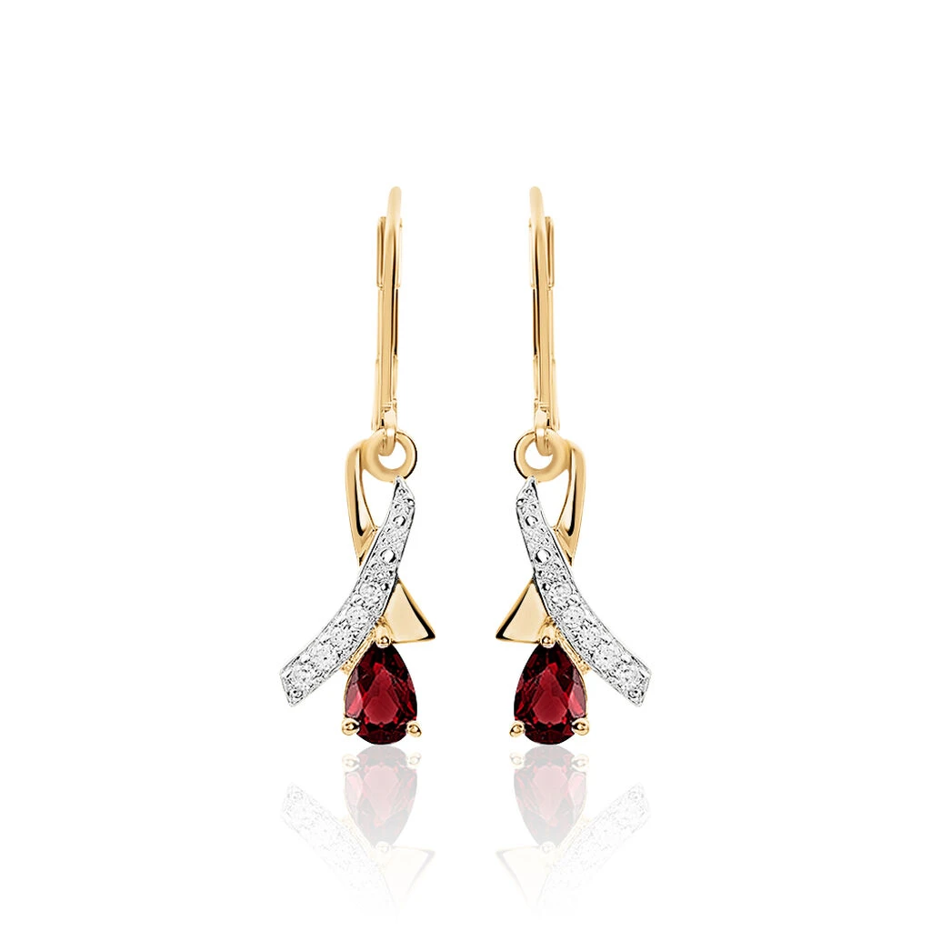 Boucles D’oreilles Plaqué Or Et Oxydes De Zirconium Rouges Et Blancs