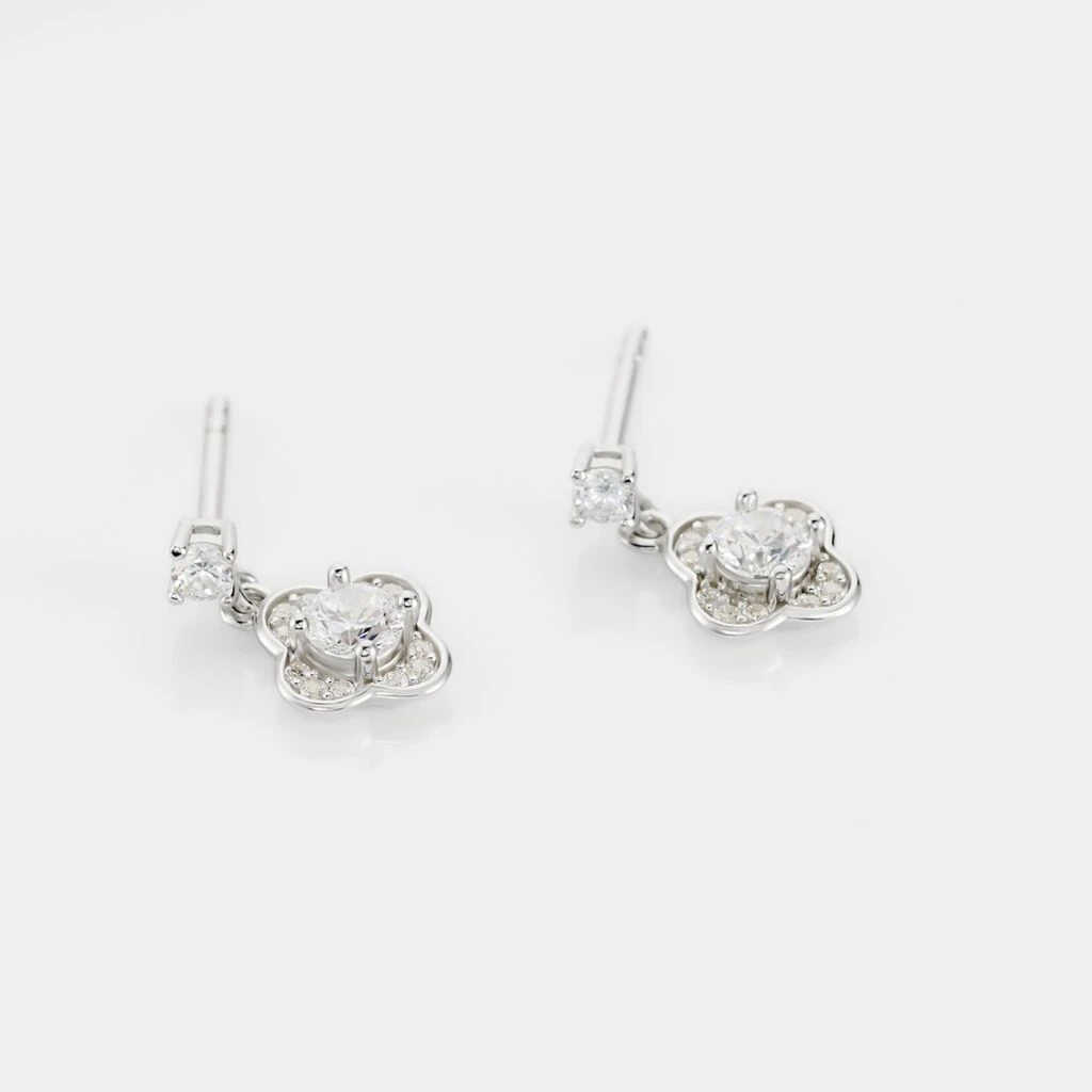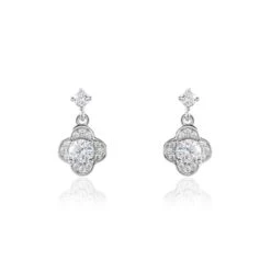 Boucles D’oreilles Pendantes Argent 925/1000 Fleurs Oxydes De Zirconium Serti Griffes