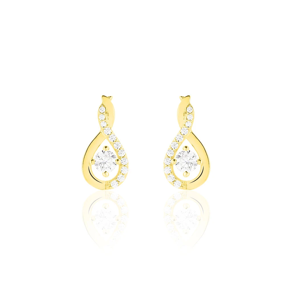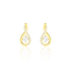 Boucles D’oreilles Or Jaune 375/1000 Gouttes Entrelacées Oxydes De Zirconium