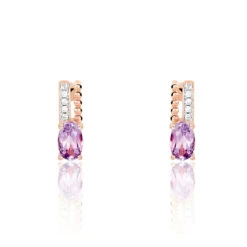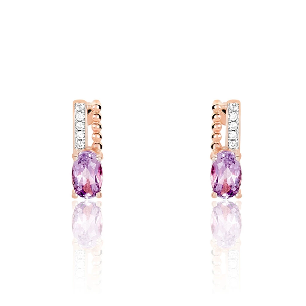 Boucles D’oreilles Pendantes Frannie Or Rose Amethyste Et Oxyde