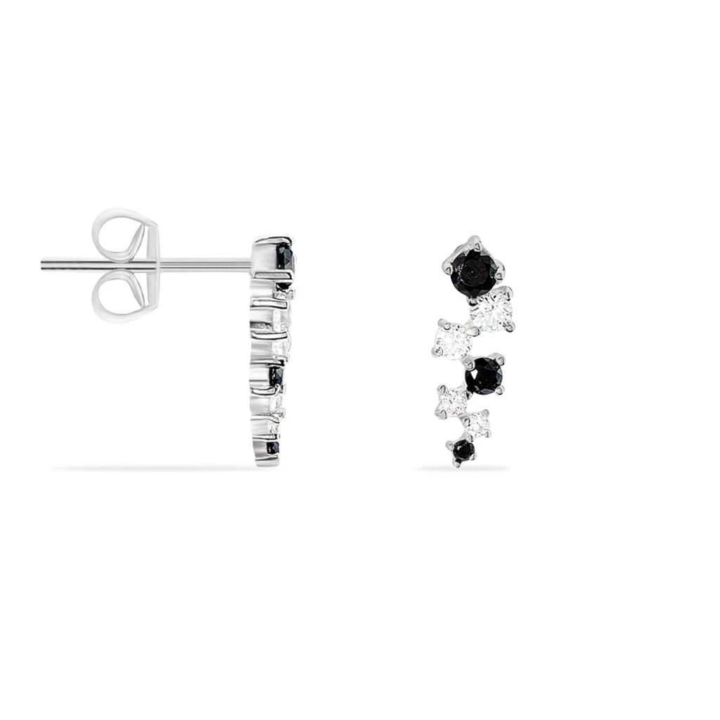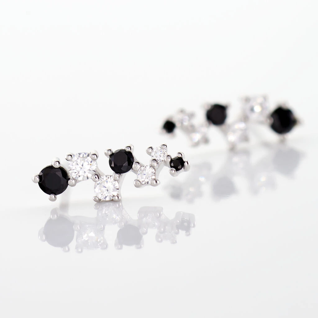 Boucles D’oreilles Pendantes Argent Blanc 925/1000 Oxydes De Zirconium Blancs Et Noirs