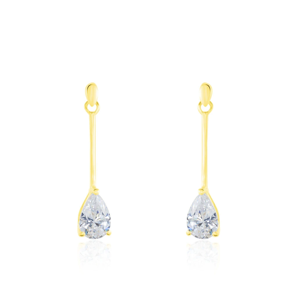Boucles D’oreilles Pendantes Goutte Or Jaune Oxyde De Zirconium
