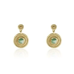 Boucles D’oreilles Pendantes Plaque Or Jaune Rondes Aventurines Vertes