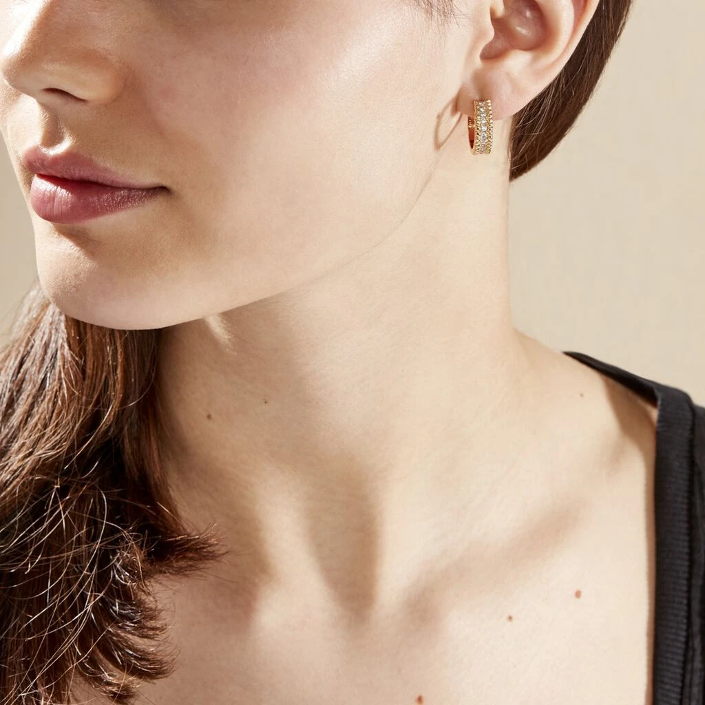 Boucles D’oreilles Plaqué Or Jaune Motifs Perles Oxydes De Zirconium