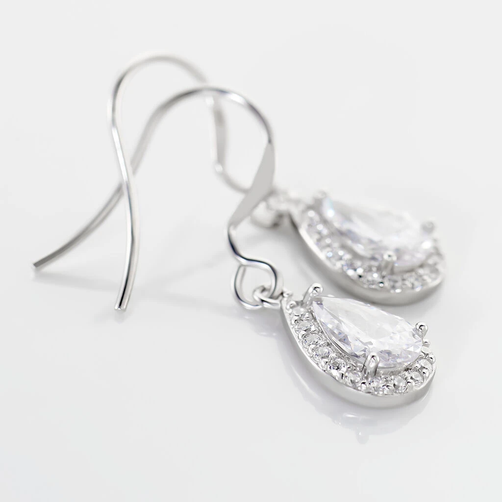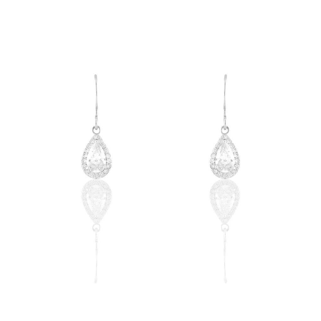 Boucles D’oreilles Argent Blanc 925/1000 Gouttes Oxydes De Zirconium