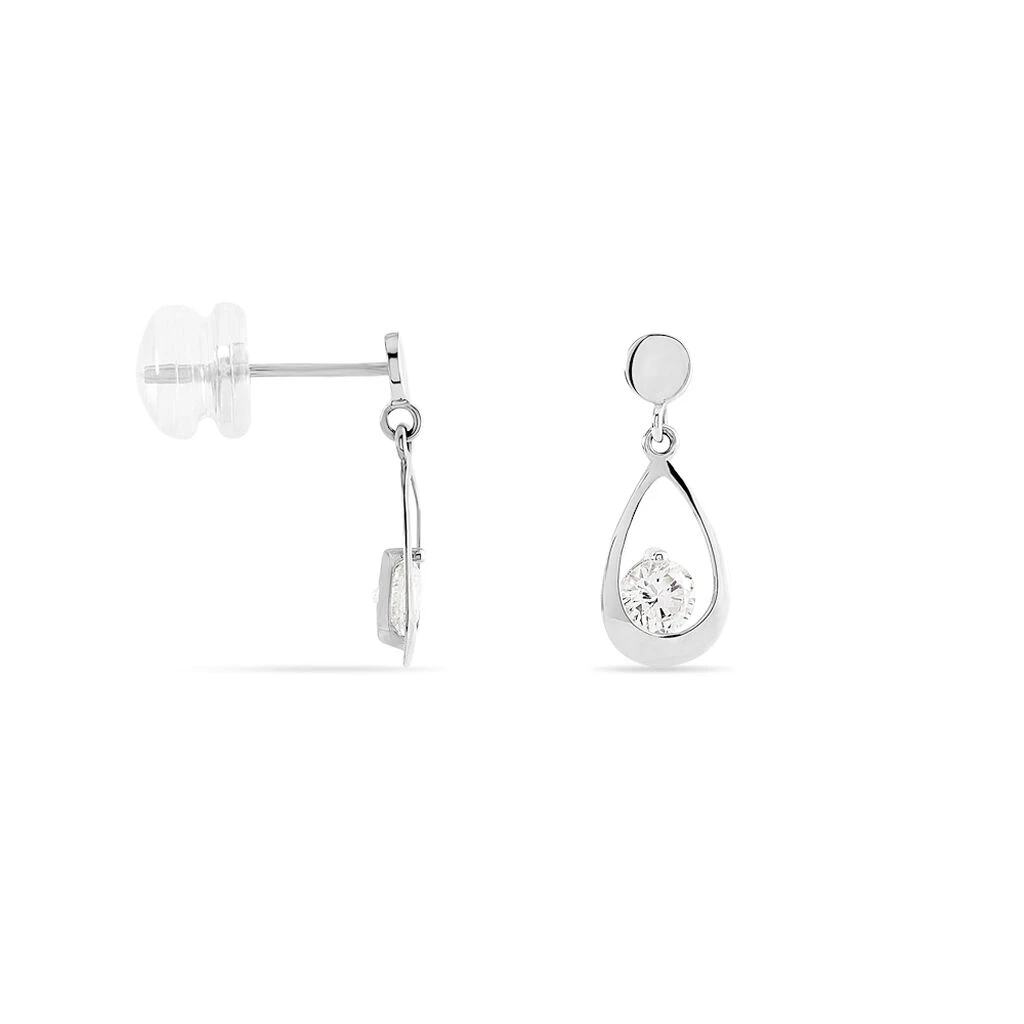 Boucles D’oreilles Or Blanc 375/1000 Forme Goutte Ajourée Oxyde De Zirconium Central