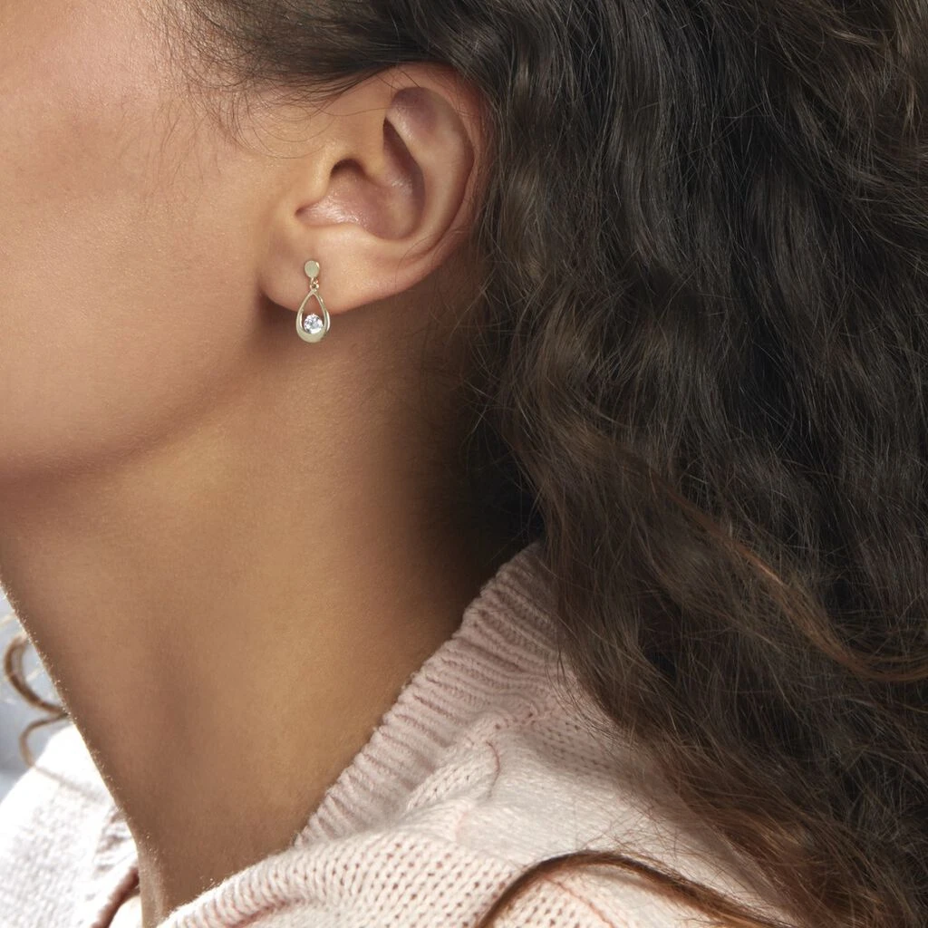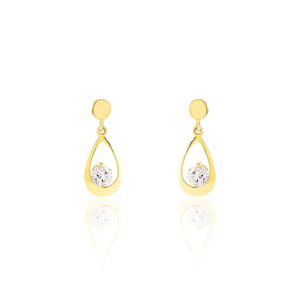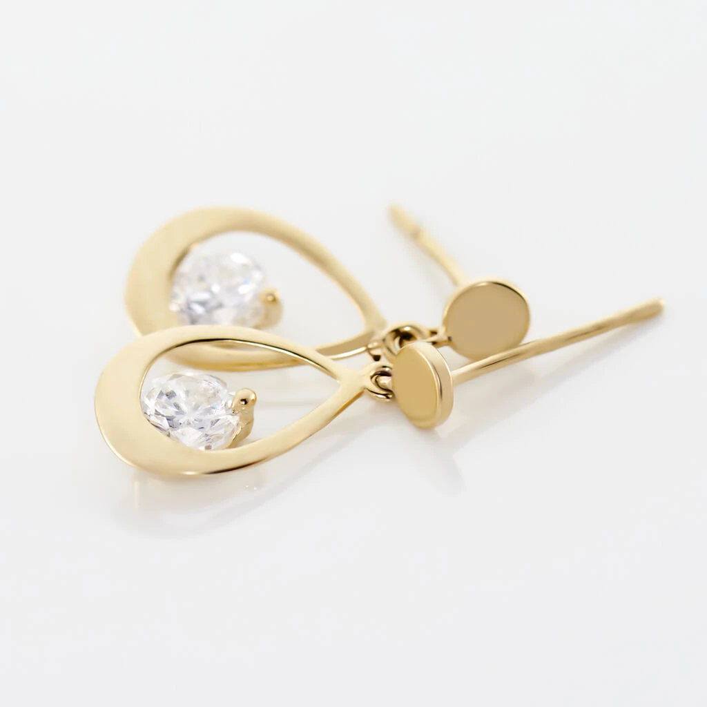Boucles D’oreilles Or Jaune 375/1000 Forme Goutte Ajourée Oxyde De Zirconium Central