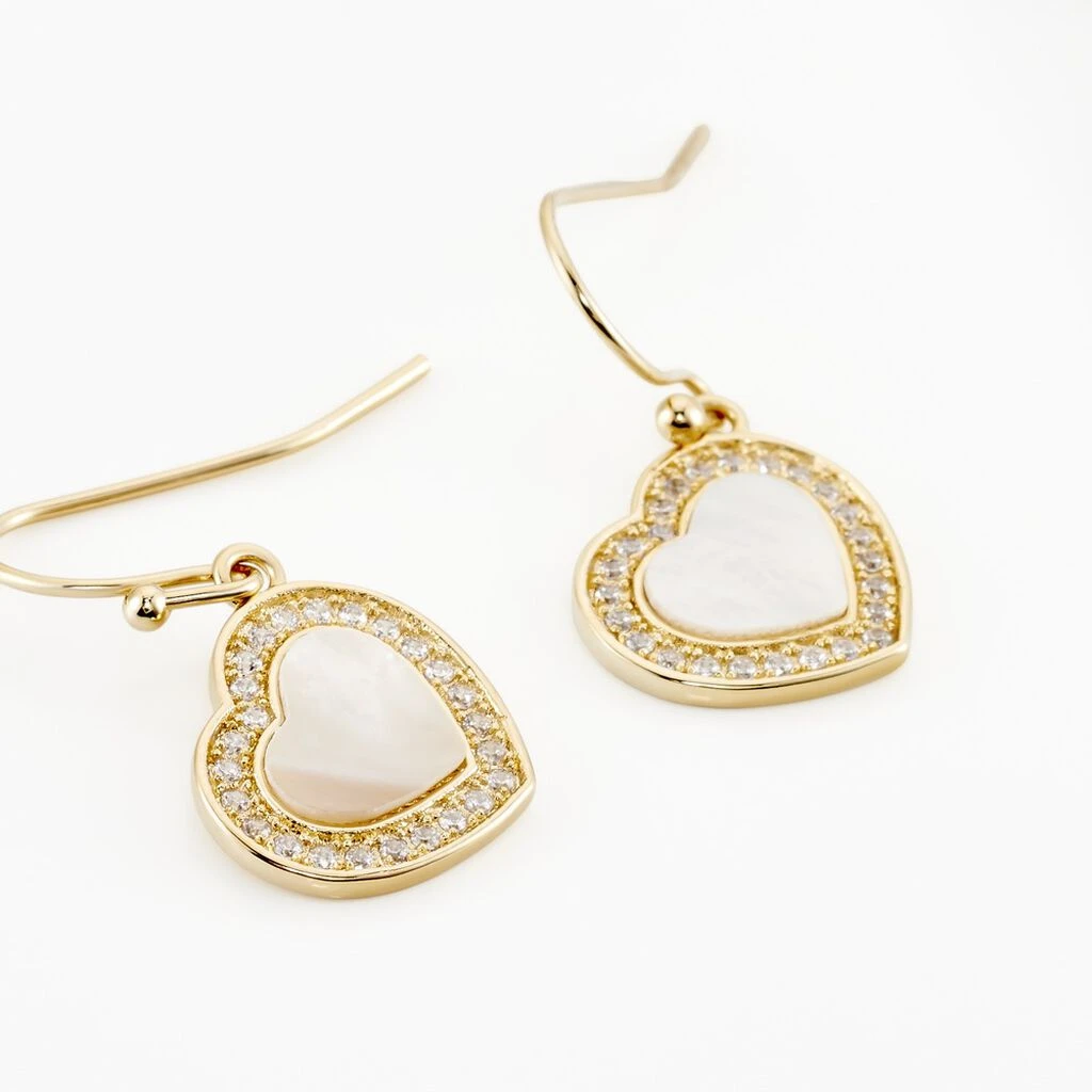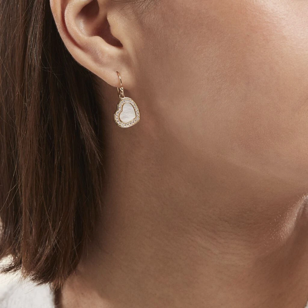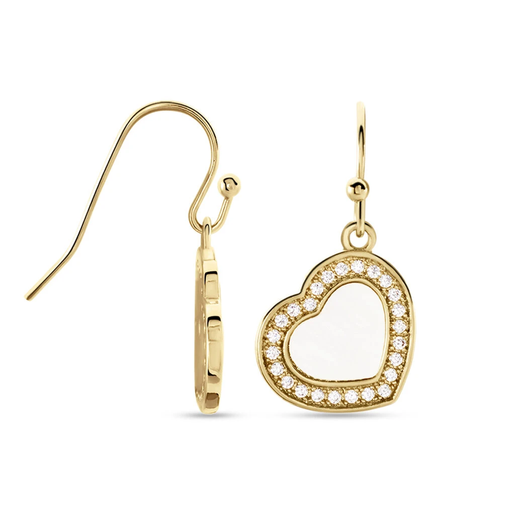 Boucles D’oreilles Pendantes Plaqué Or Jaune Cœurs Nacres Blanches Entourages Oxydes De Zirconium