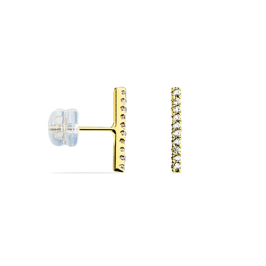 Boucles D’oreilles Or Jaune 375/1000 Formes Barrettes Pavage Oxydes De Zirconium