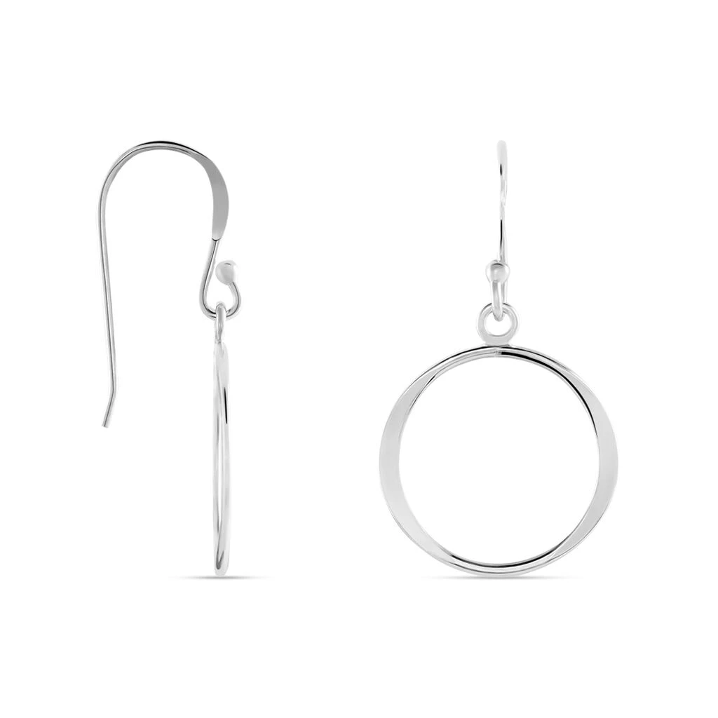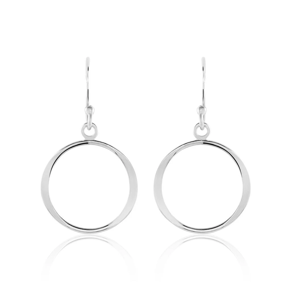 Boucles D’oreilles Pendantes Argent Blanc 925/1000 Cercles Ajoures