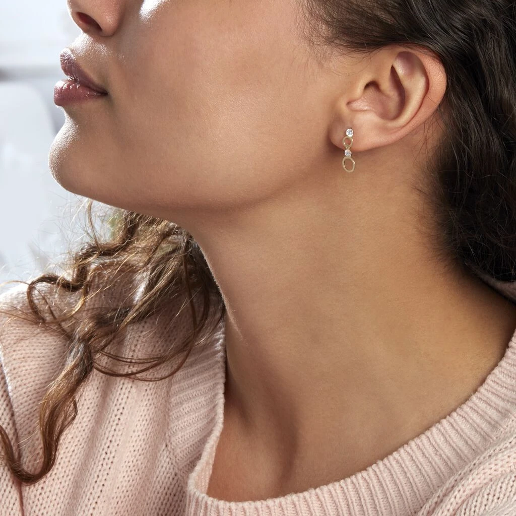 Boucles D’oreilles Pendante Or Jaune 375/1000 Multi Cercles Oxydes De Zirconium