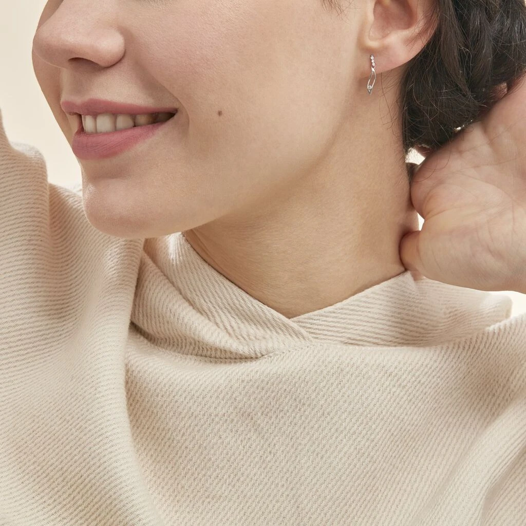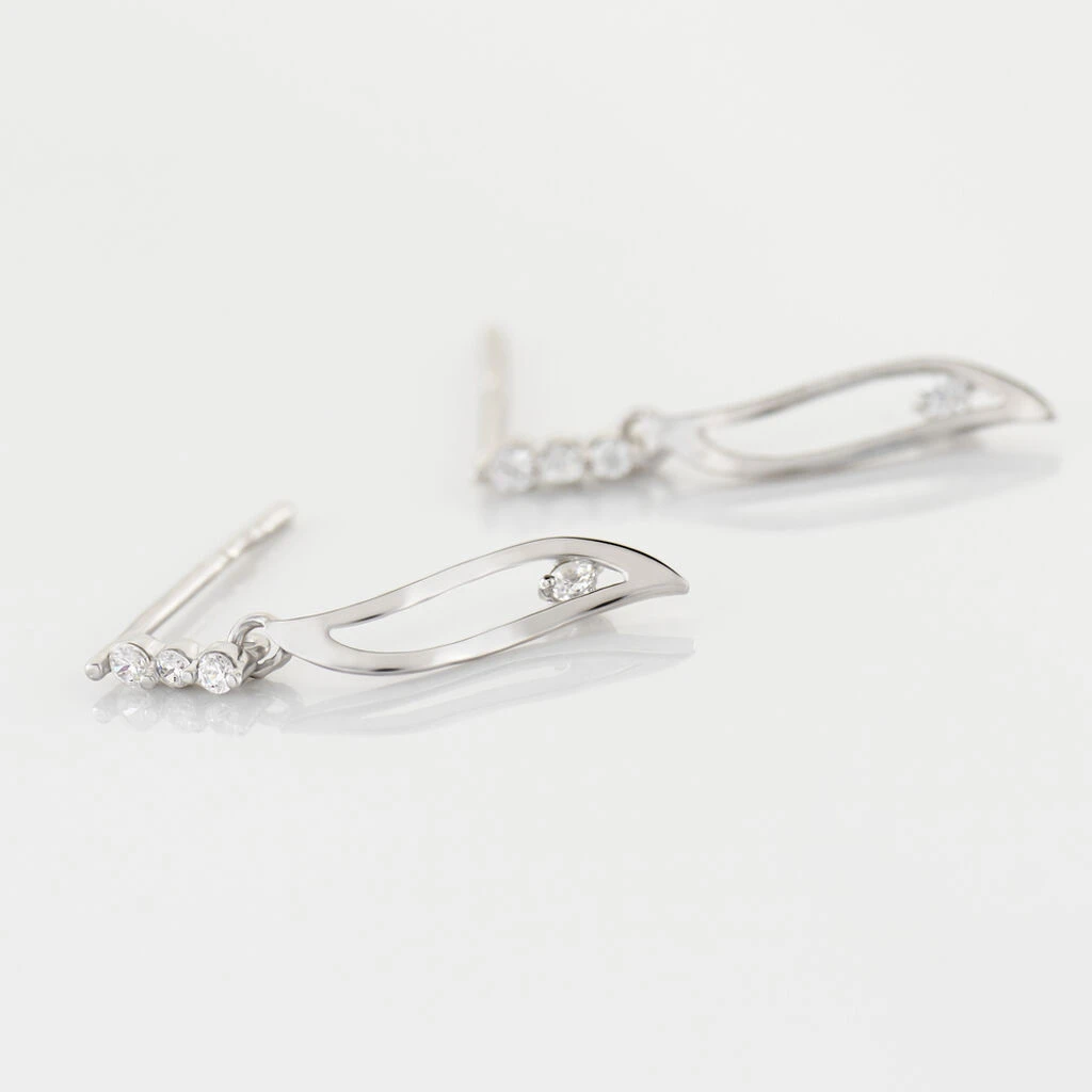 Boucles D’oreilles Or Blanc 375/1000 Forme Feuille Oxydes De Zirconium