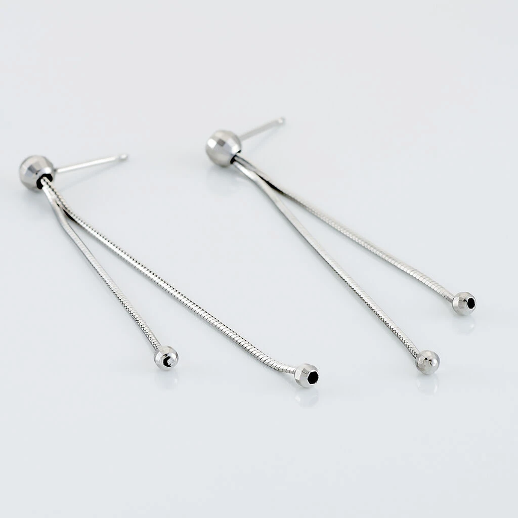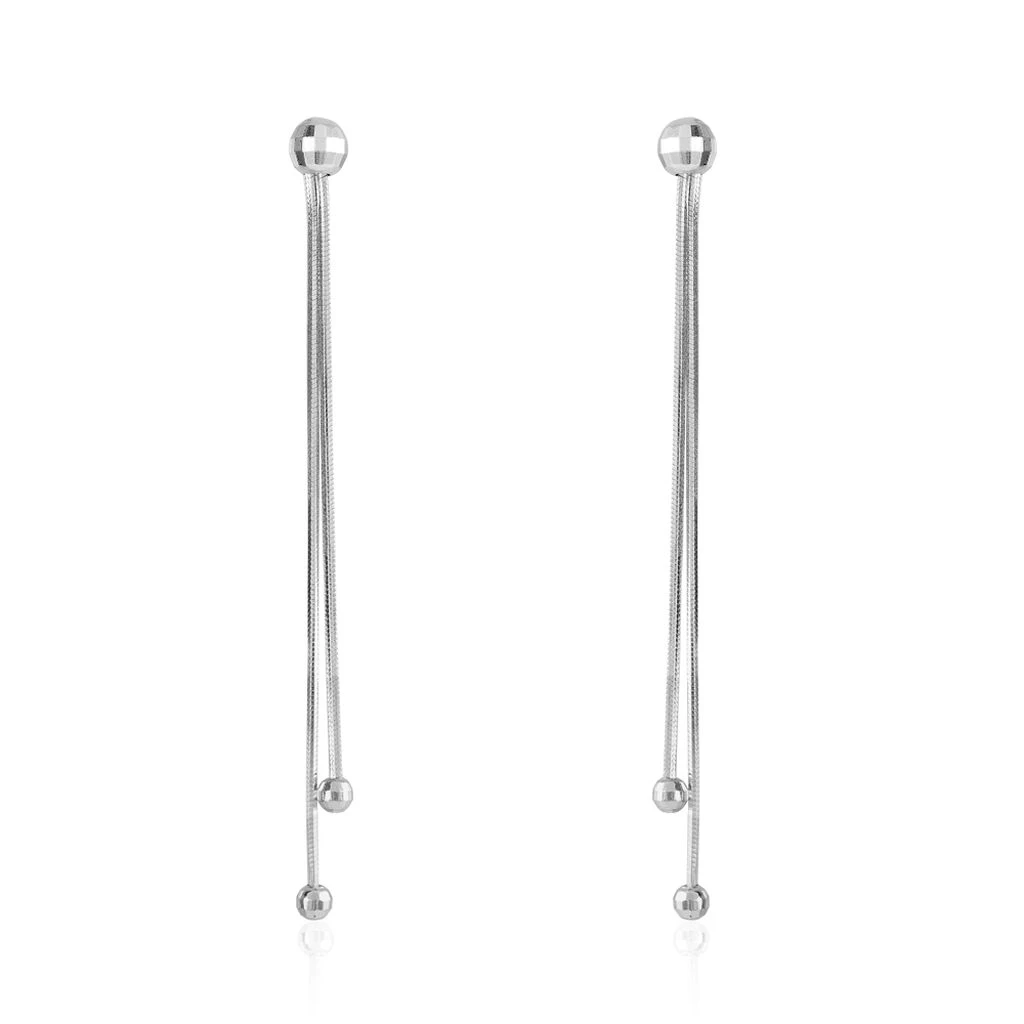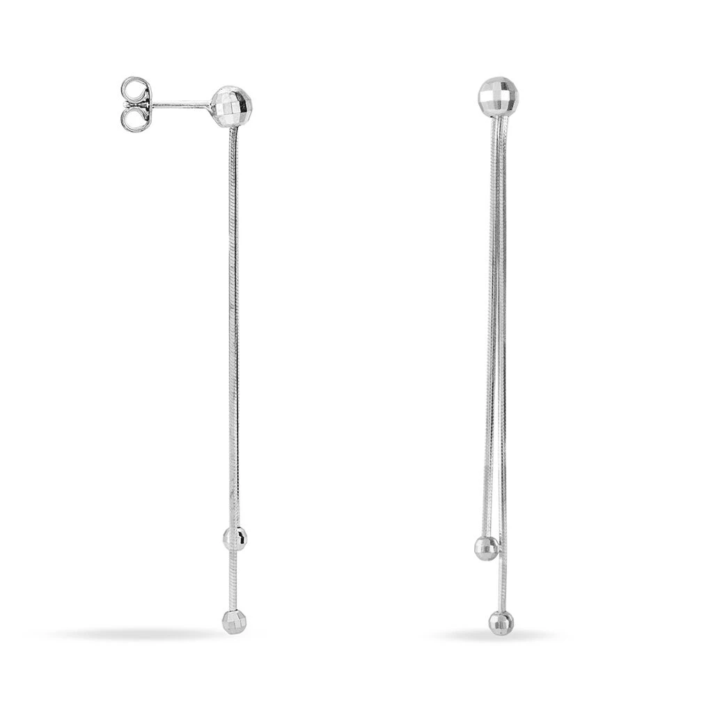 Boucles D’oreilles Pendantes Argent Blanc 925/1000 Boules Double Mailles Serpent