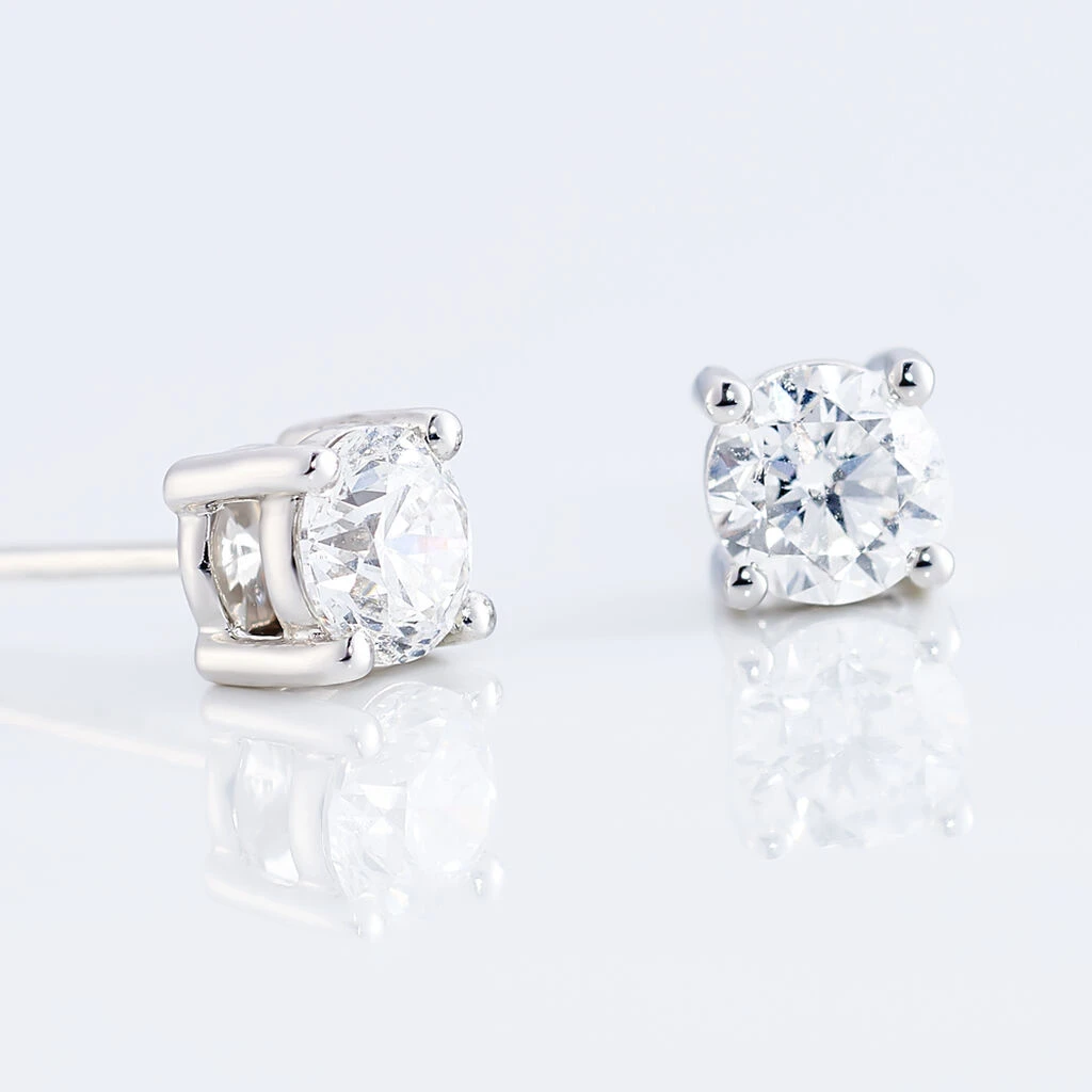 Boucles D’oreilles Puces Or Blanc 750/1000 Diamants Synthétiques 1.00ct Serti 4 Griffes Systèmes Alpas