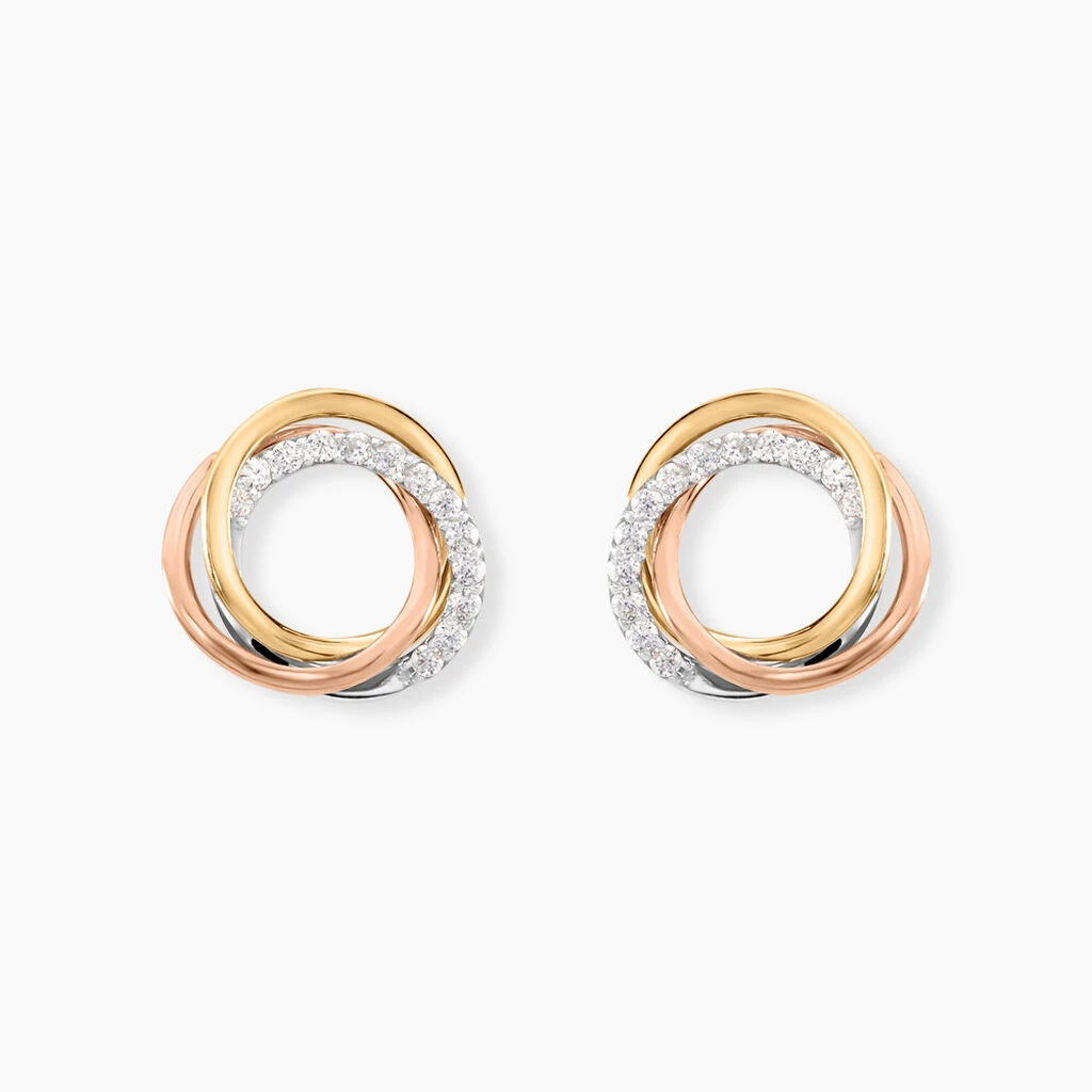Boucles D’oreilles Puces Or Tricolore 375/1000 Cercles Et Micro Pavage Oxydes De Zirconium Gm