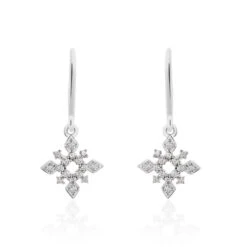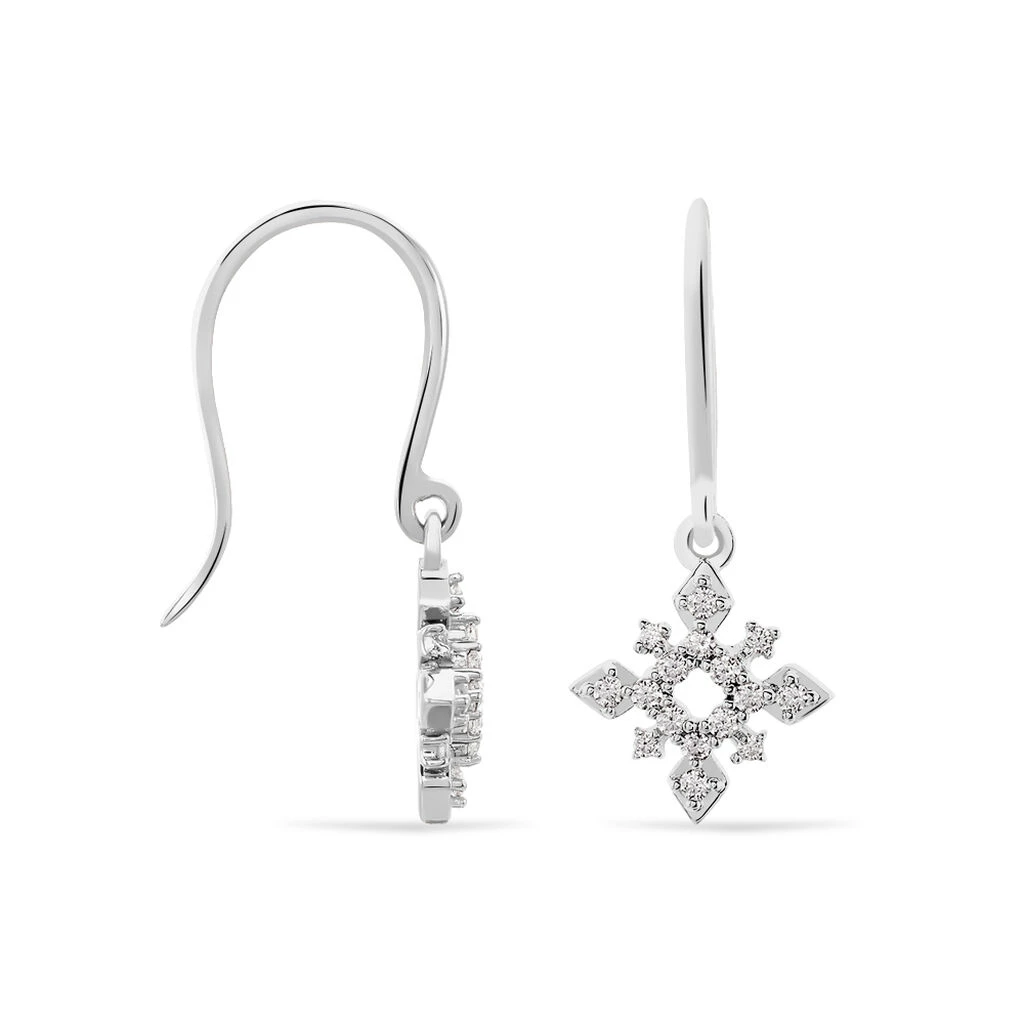 Boucles D’oreilles Or Blanc 375/1000 Motif Flocon Diamants