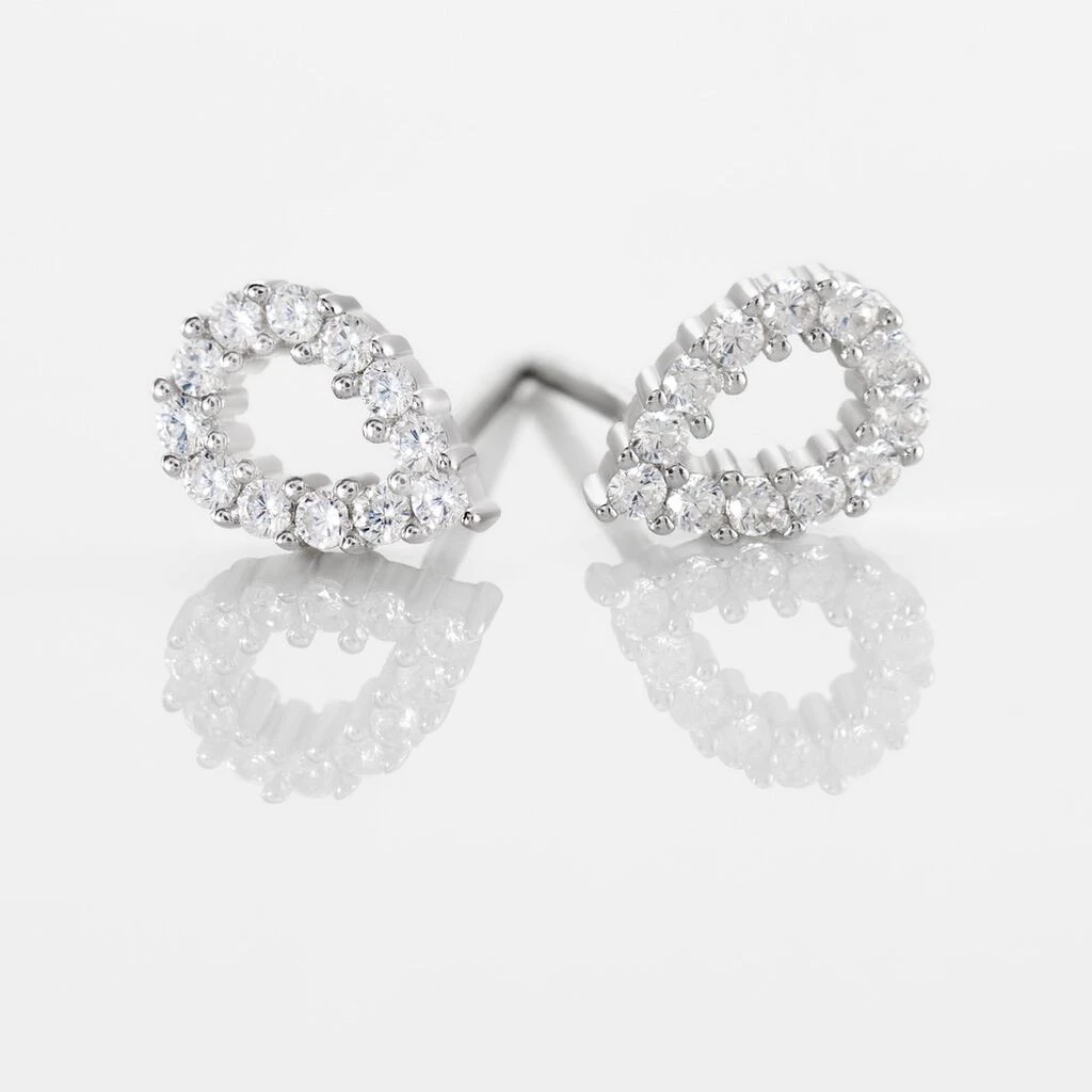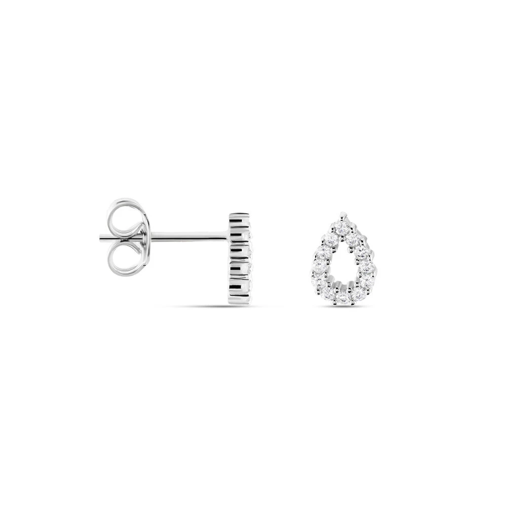 Boucles D’oreilles Puces Argent Blanc 925/1000 Goutte Oxydes De Zirconium Sertis Pavage