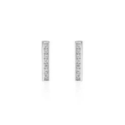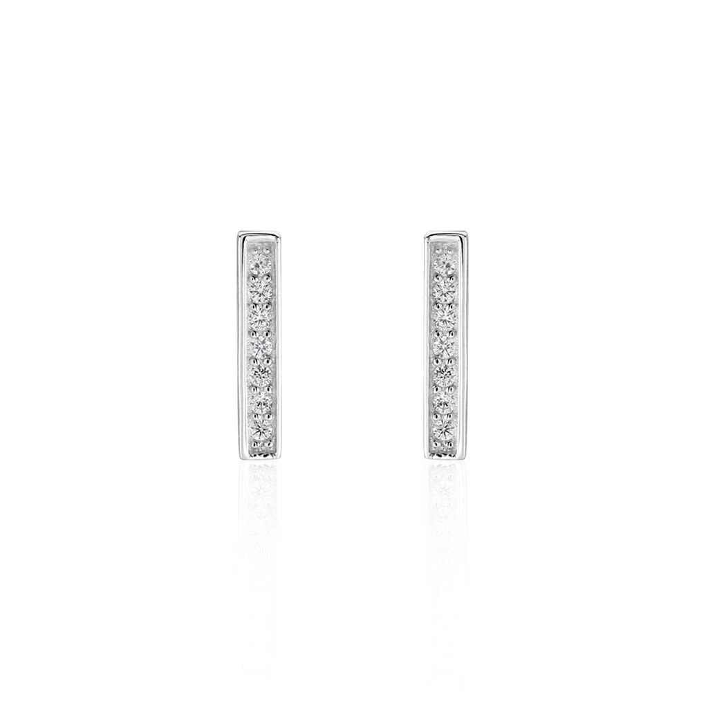 Boucles D’oreilles Puces Argent Blanc 925/1000 Barrette Oxydes De Zirconium Sertis Pavage