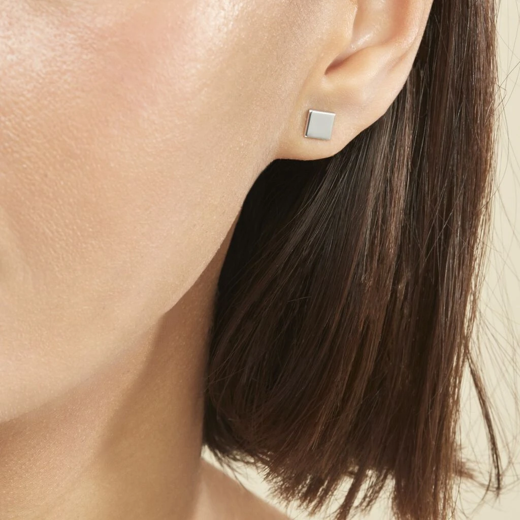 Boucles D’oreilles Puces Argent Blanc 925/1000 Carres
