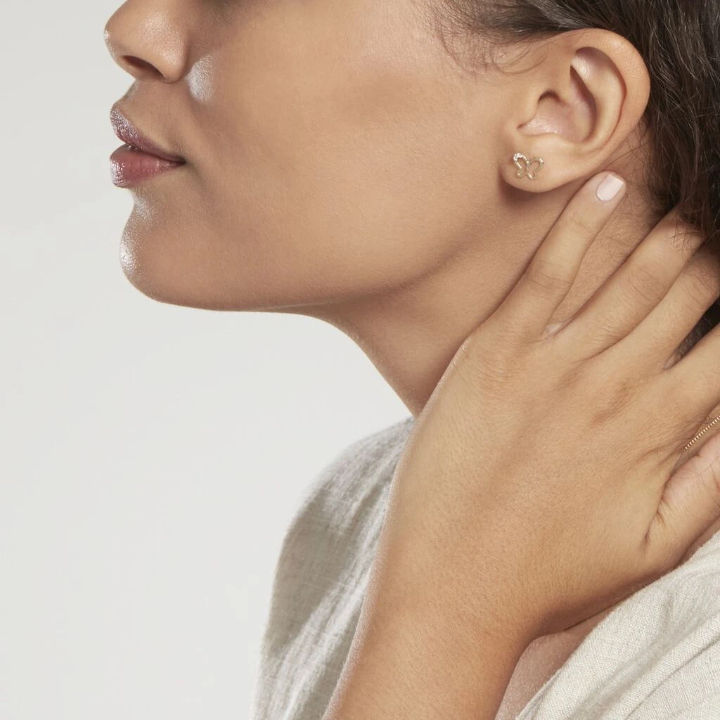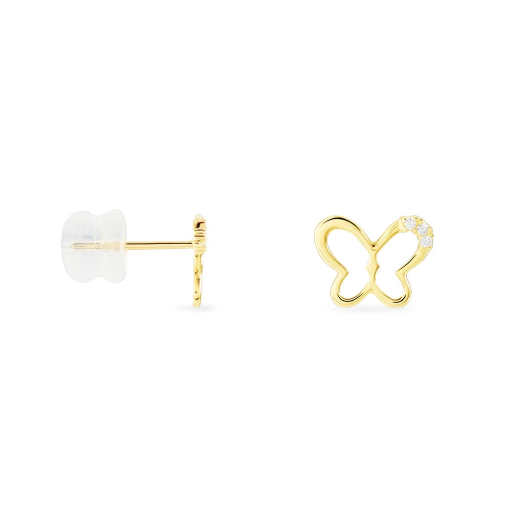 Boucles D’oreilles Or Jaune 375/1000 Puces Papillons Oxyde De Zirconium