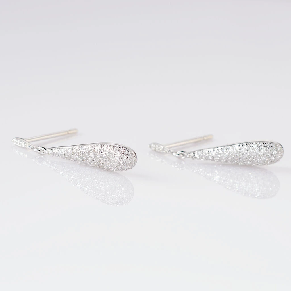 Boucles D’oreilles Or Blanc 375/1000 Formes Gouttes Pavages Diamants