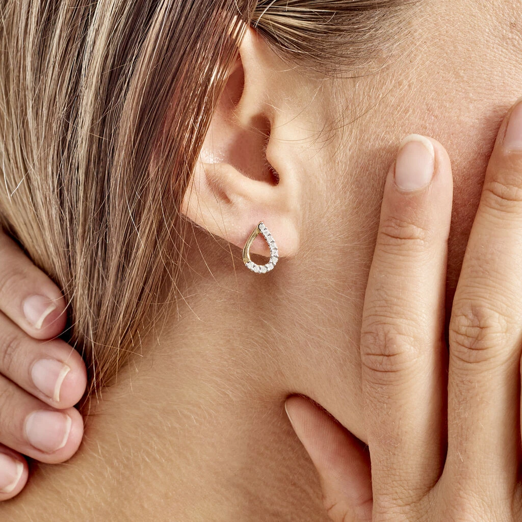 Boucles D’oreilles Or Jaune 375/1000 Formes Gouttes Diamants