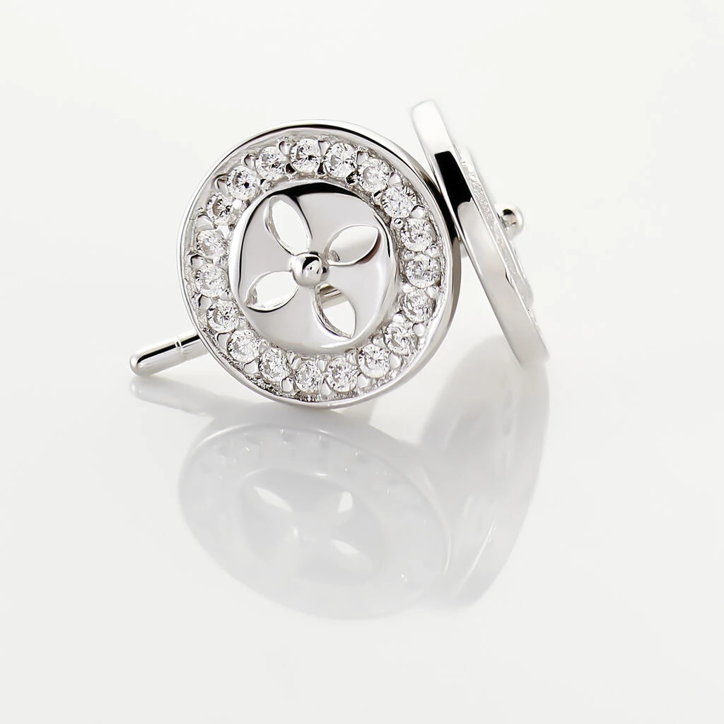Boucles D’oreilles Puces Argent Blanc 925/1000 Fleurs Oxyde De Zirconium