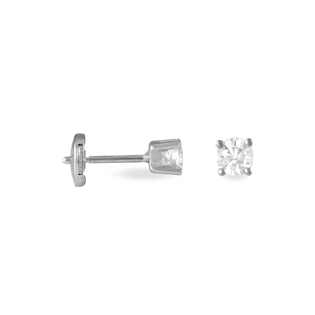 Boucles D’oreilles Or Blanc 750/1000 Puces Diamants Sertis 4 Griffes Systemes Alpas 0.50cts