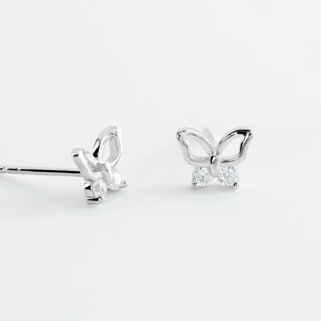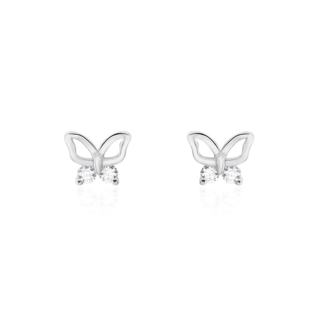 Boucles D’oreilles Puces Argent Blanc 925/1000 Papillons Sertis Griffes Oxydes De Zirconium
