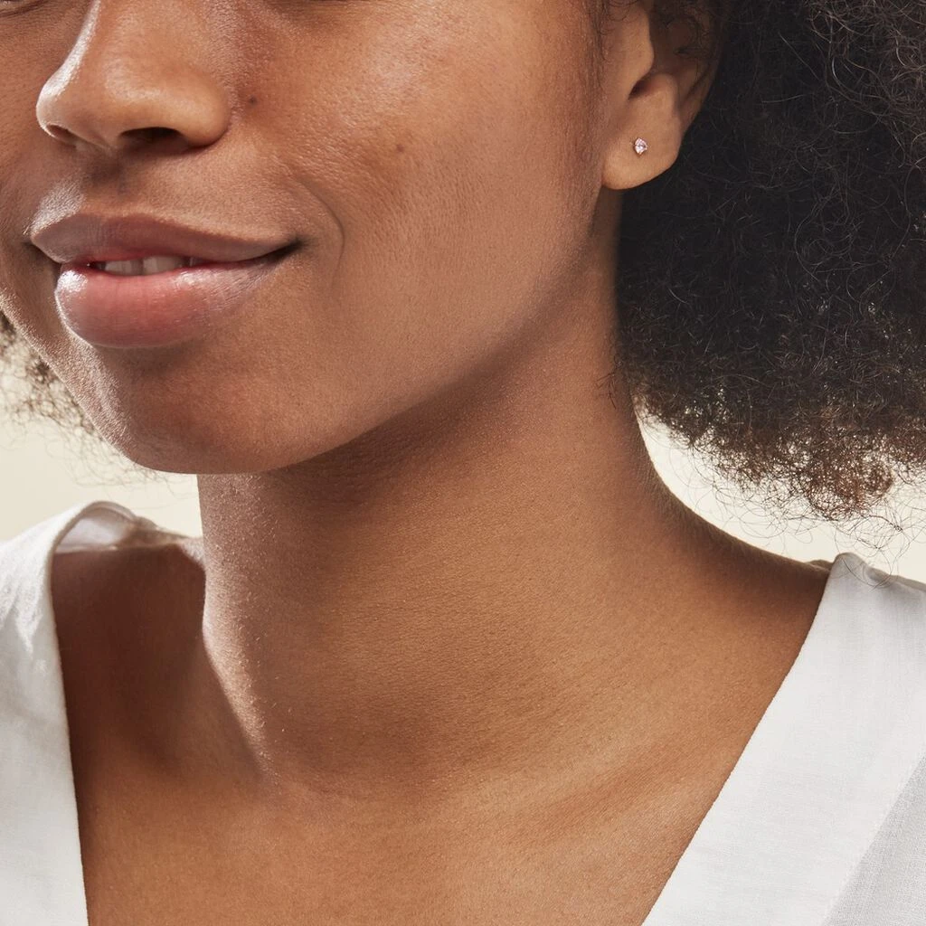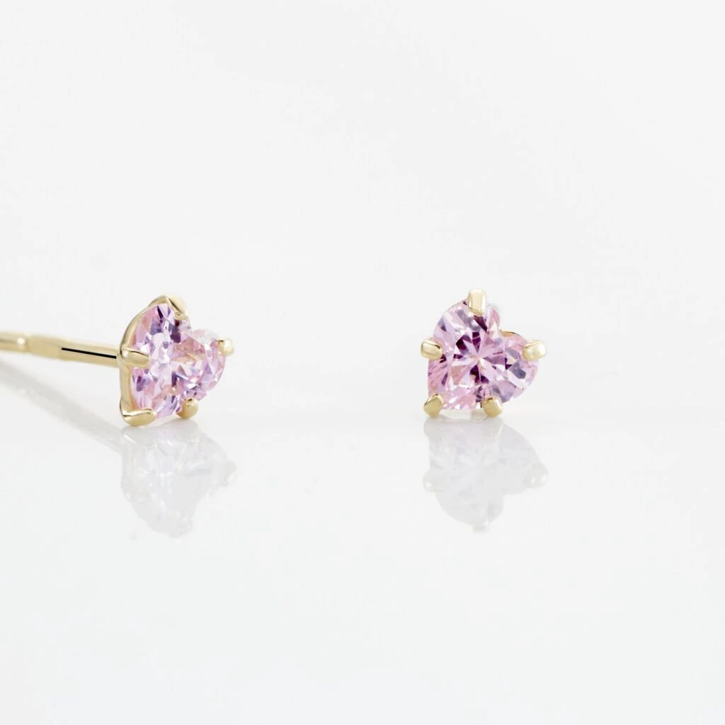 Boucles D’oreilles Puces Or Jaune 375/1000 Cœurs Serti Griffes Oxydes De Zirconium Rose 3mm