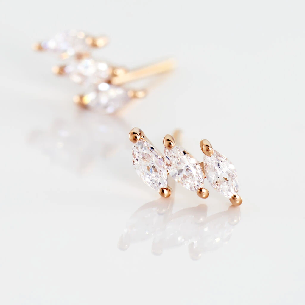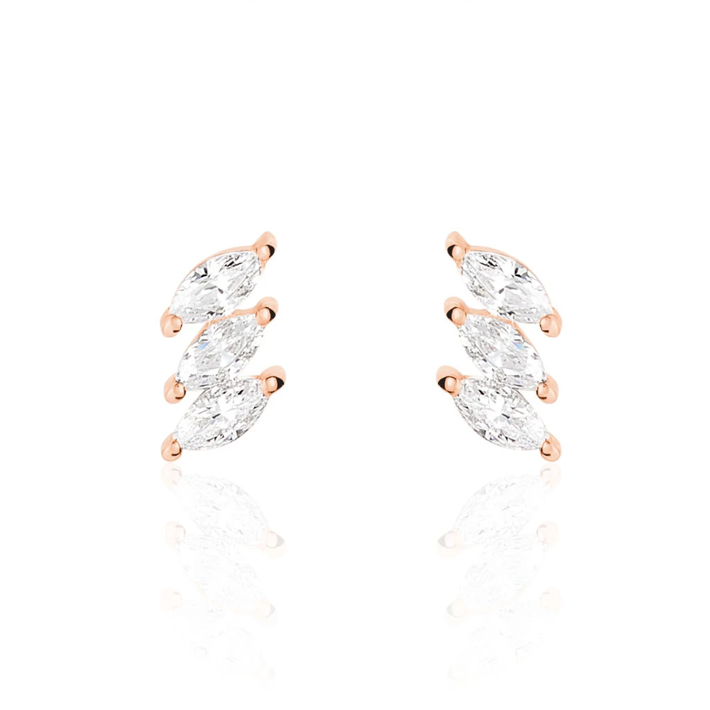 Boucles D’oreilles Or Rose 375/1000 Puces 3 Oxydes De Zirconium Forme Marquise