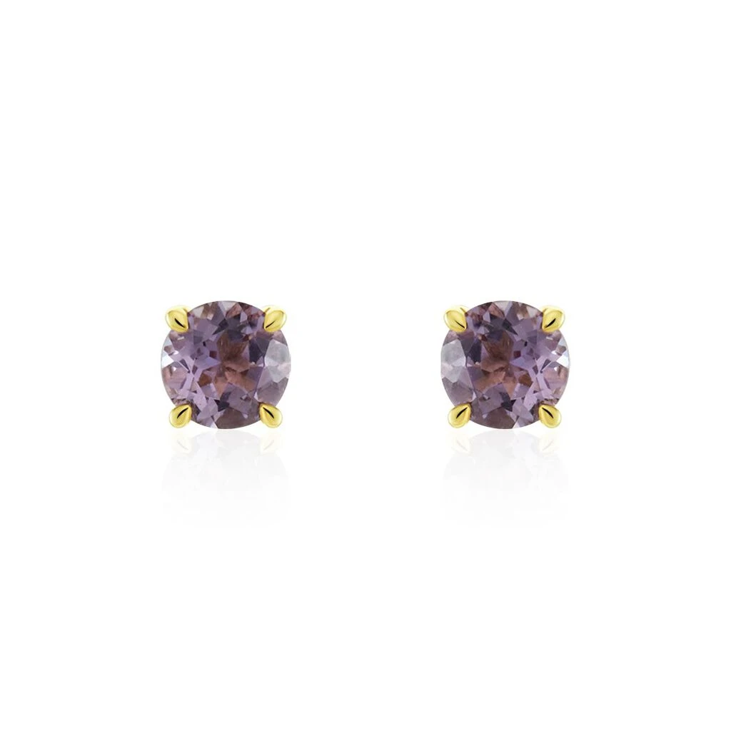 Boucles D’oreilles Puces Elea Or Jaune Amethyste Violet