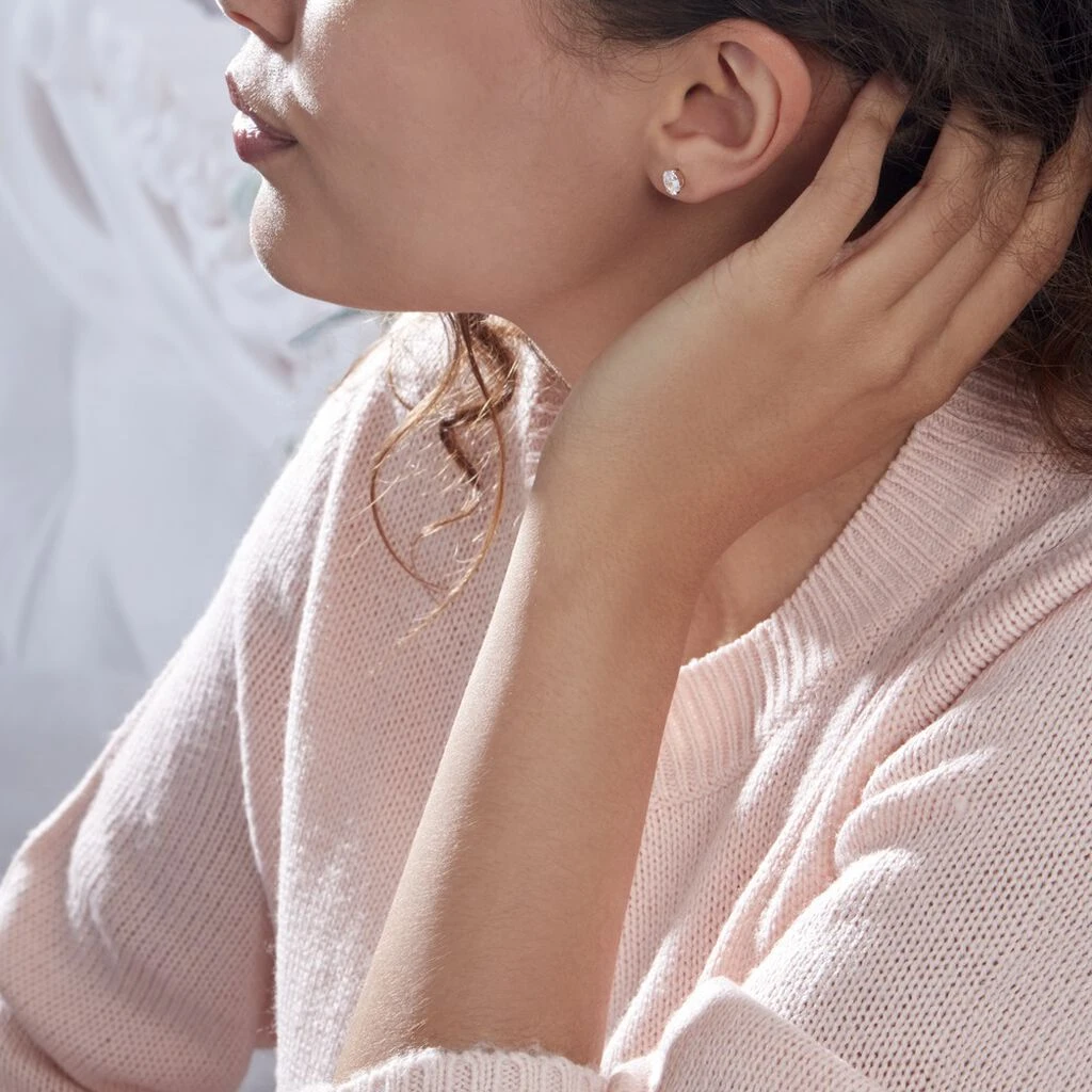Boucles D’oreilles Puces Or Jaune 375/1000 Ovales Serti 4 Griffes Oxydes De Zirconium 6x4mm