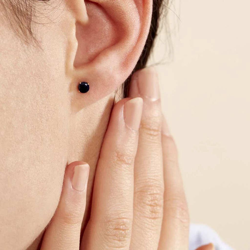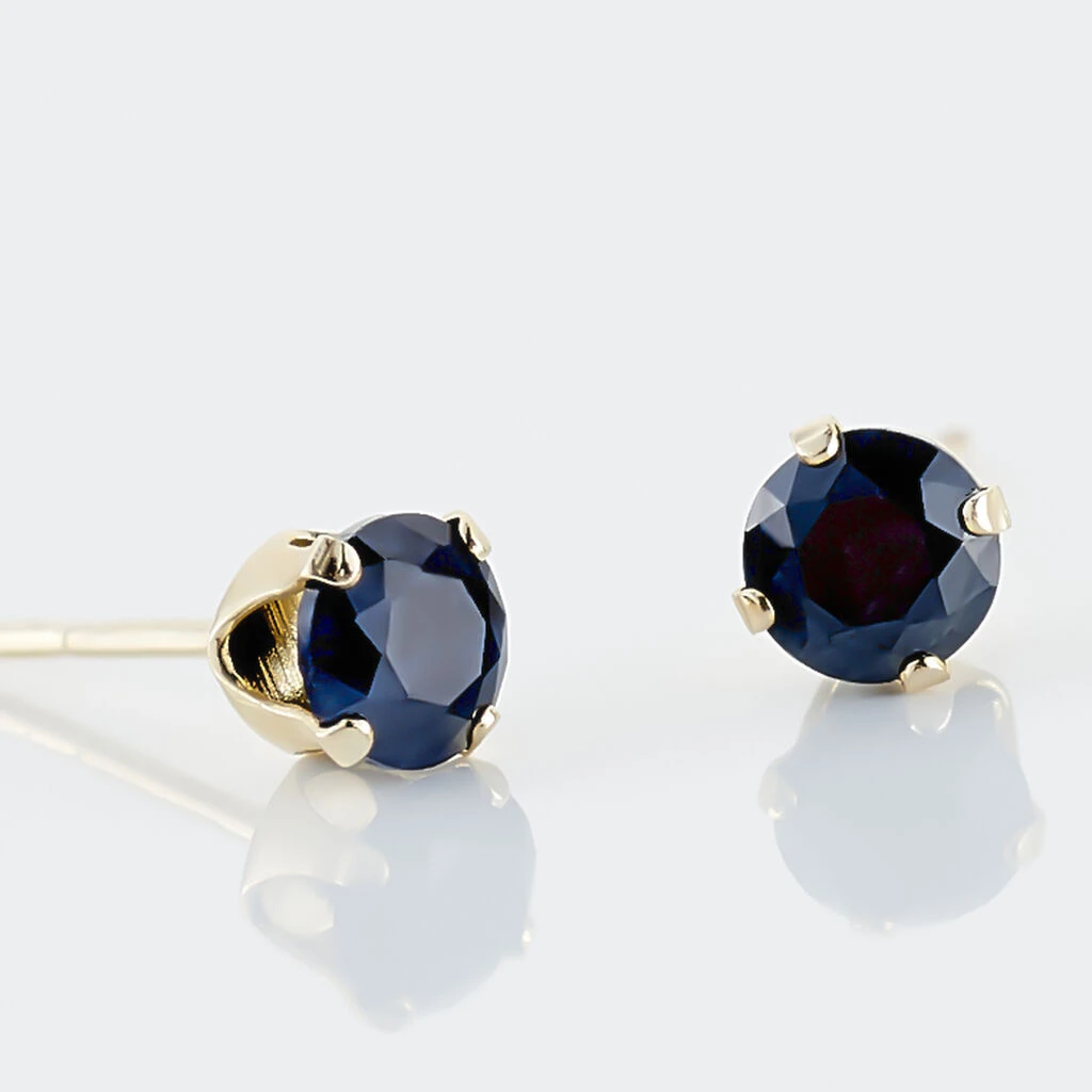 Boucles D’oreilles Or Jaune 375/1000 Puce Saphir 4mm