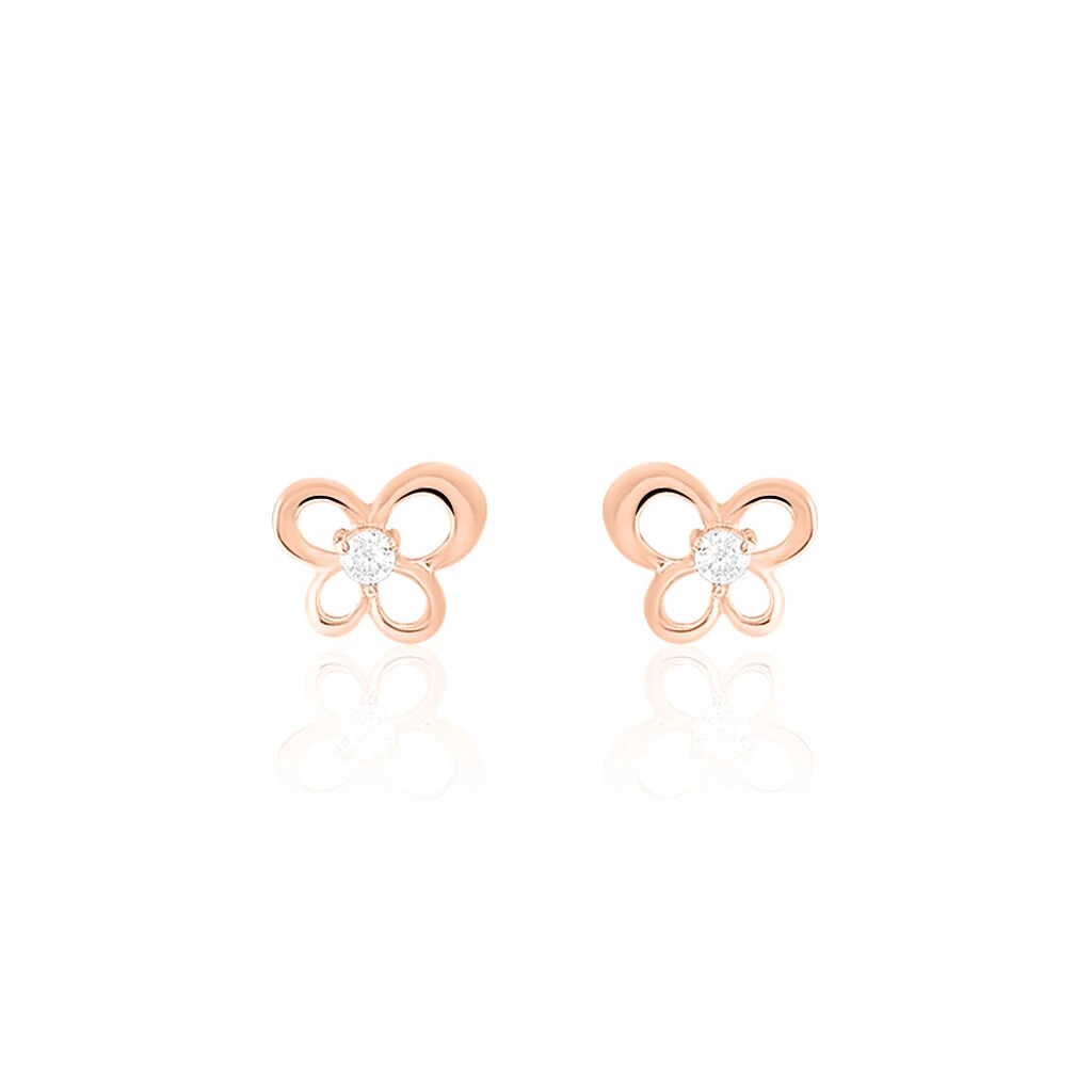 Boucles D’oreilles Puces Eleanor Fleur Or Rose Oxyde De Zirconium