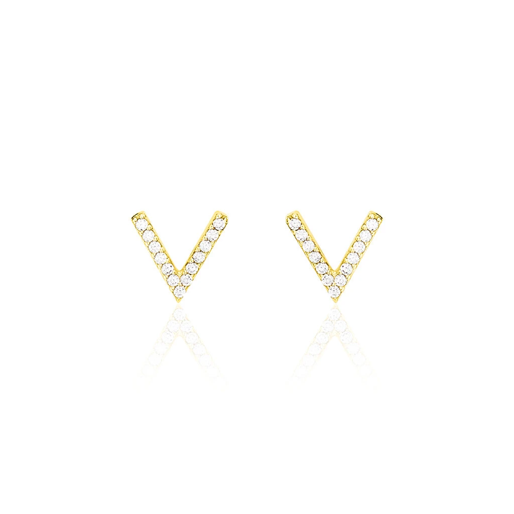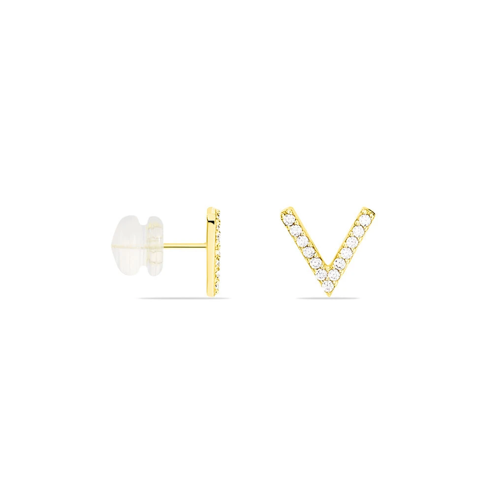 Boucles D’oreilles Puces Enimia Motif V Or Jaune Oxyde De Zirconium