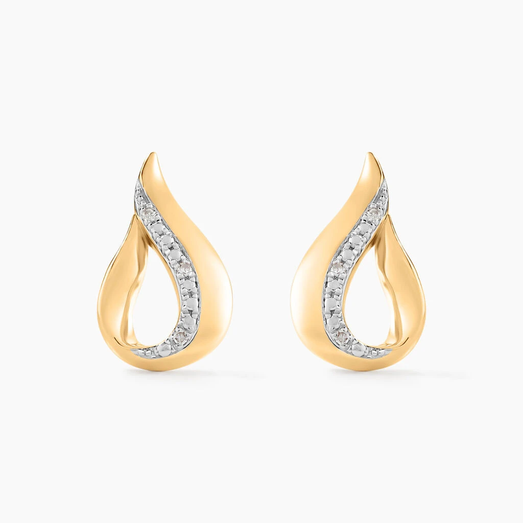 Boucles D’oreilles Puces Or Jaune 375/1000 Et Diamants Goccie